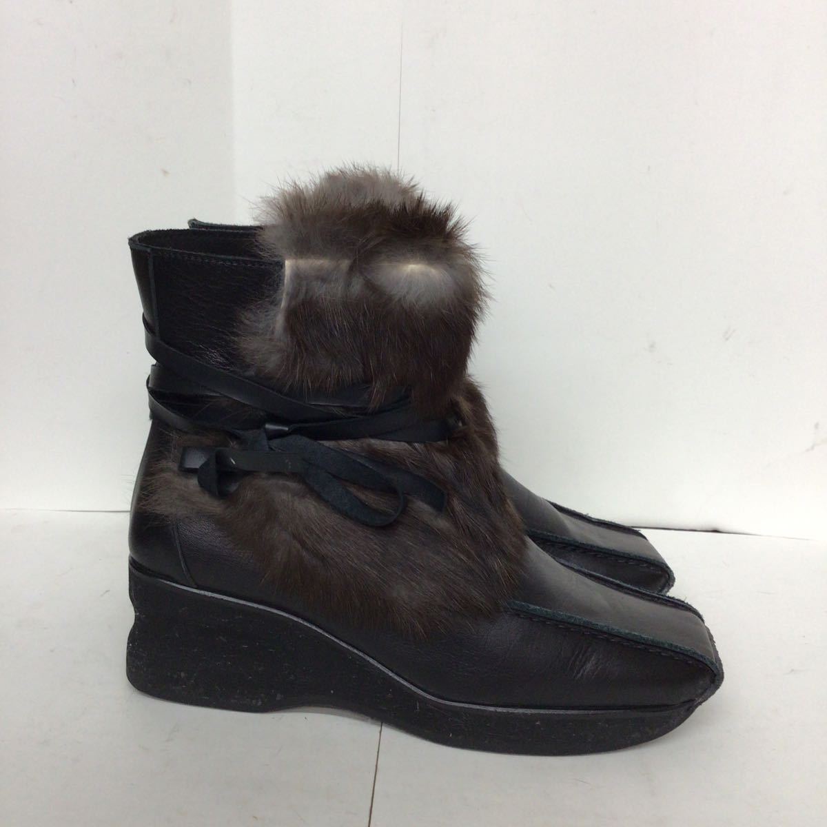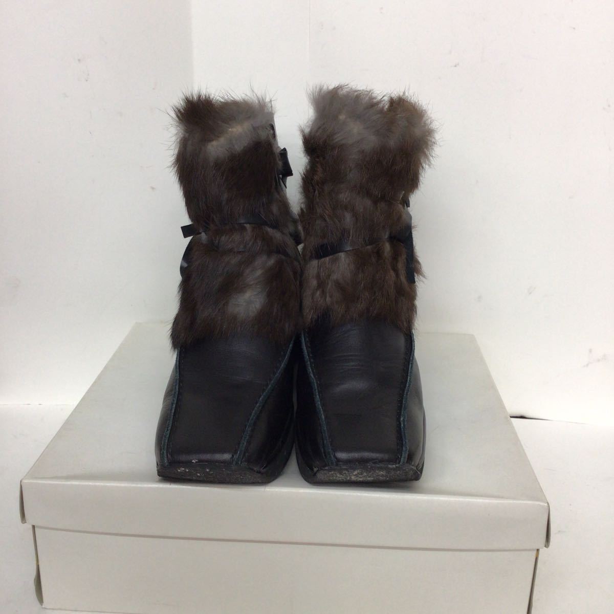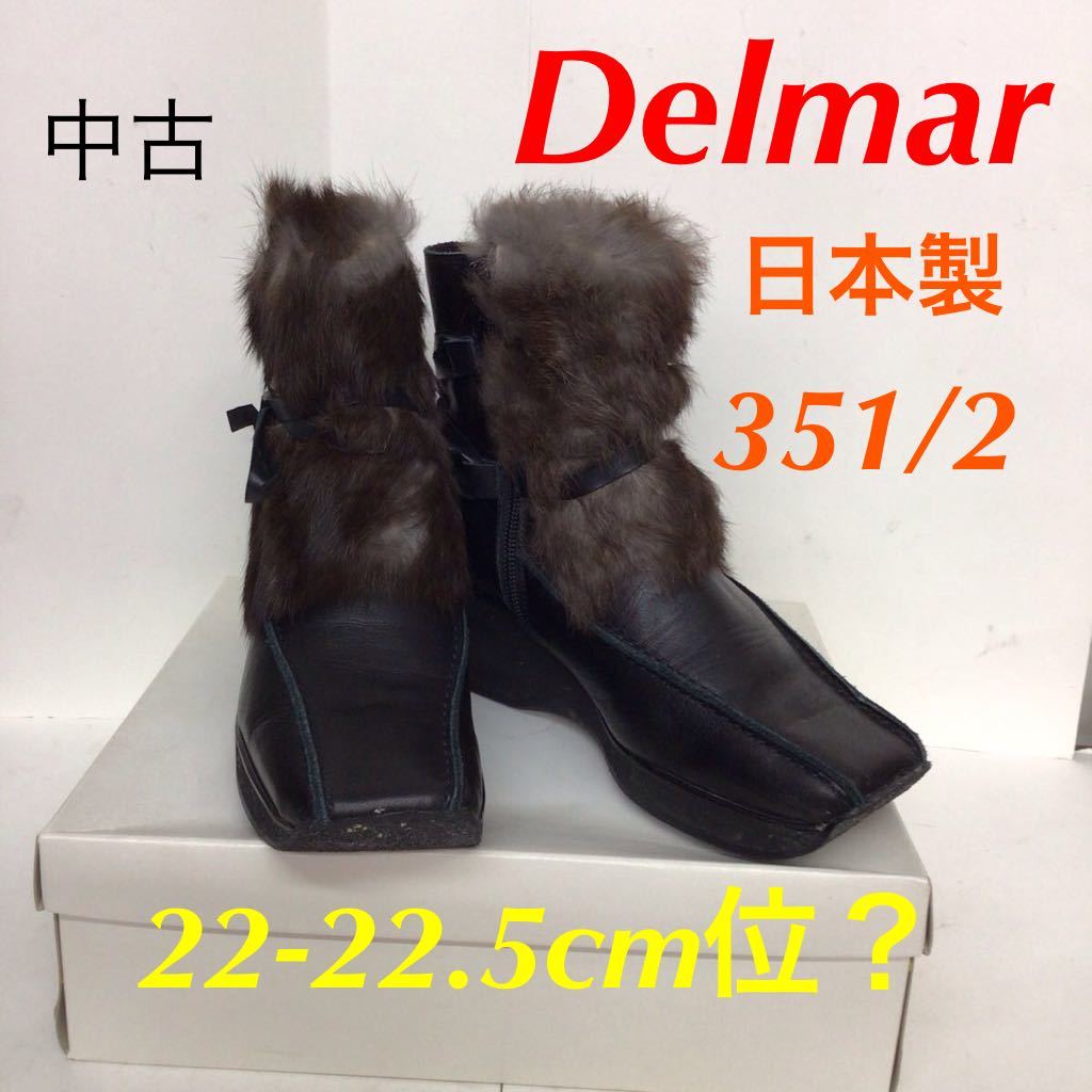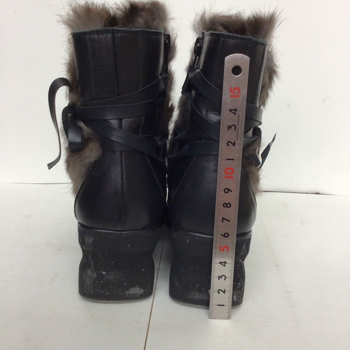 【売り切り!送料無料!】A-333 Delmar!ブーツ!ブラック!ファー!22.0cm?22.5cm?黒!ショートブーツ!かわいい!リボン!おしゃれ!中古