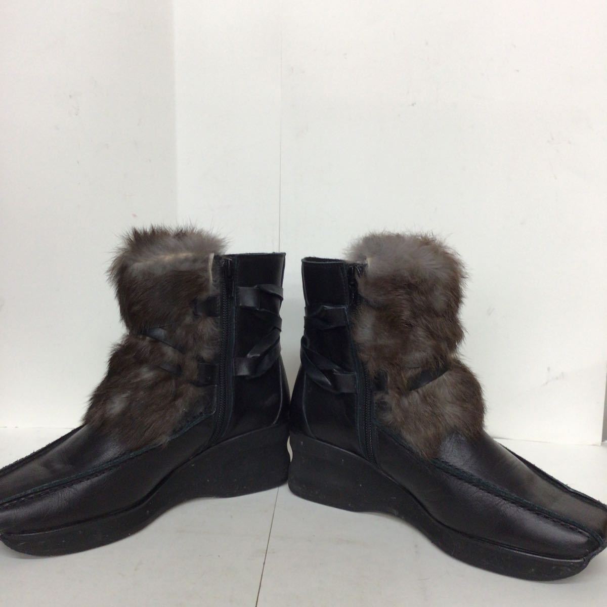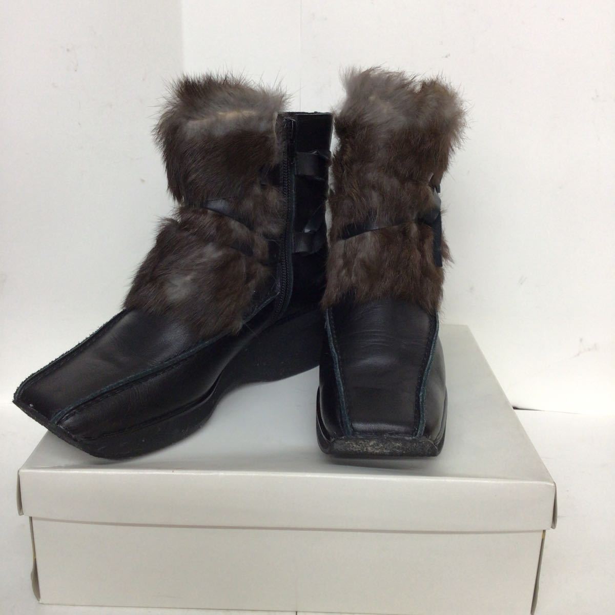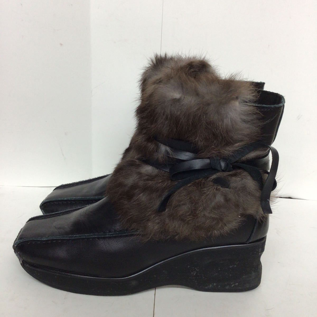 【売り切り!送料無料!】A-333 Delmar!ブーツ!ブラック!ファー!22.0cm?22.5cm?黒!ショートブーツ!かわいい!リボン!おしゃれ!中古