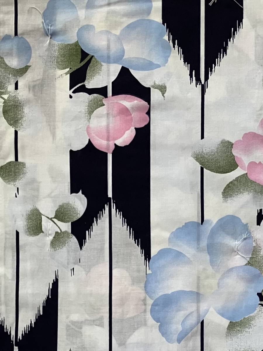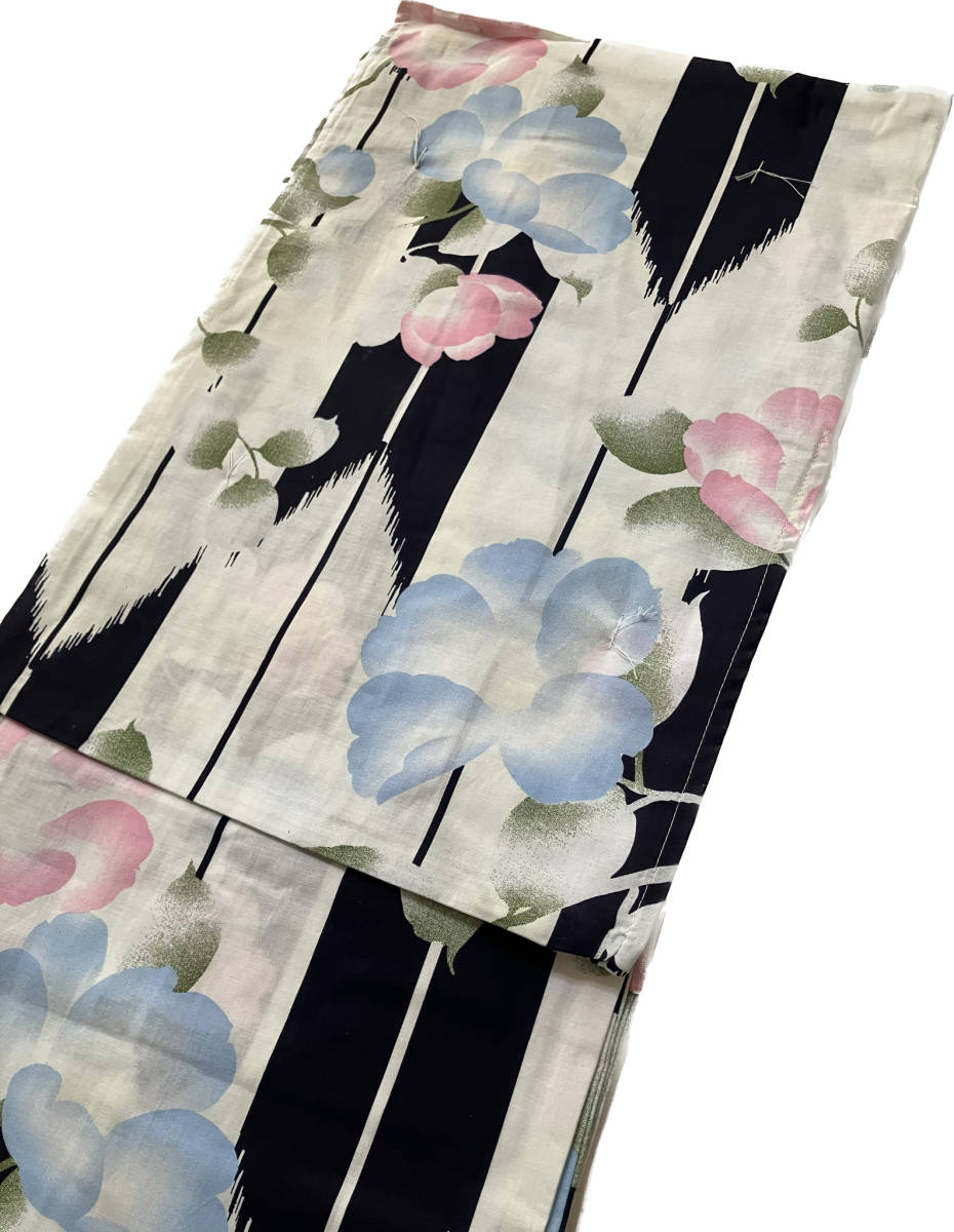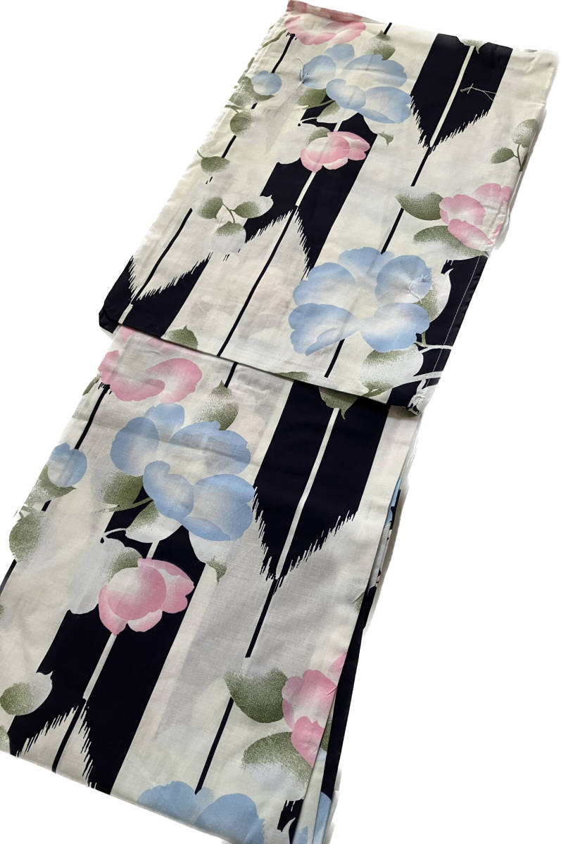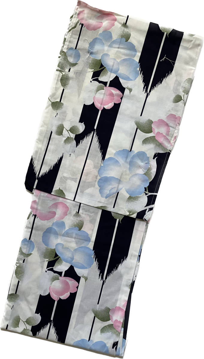 新品未使用 浴衣 レディース あさがお 矢絣 黒 白 水色 ピンク