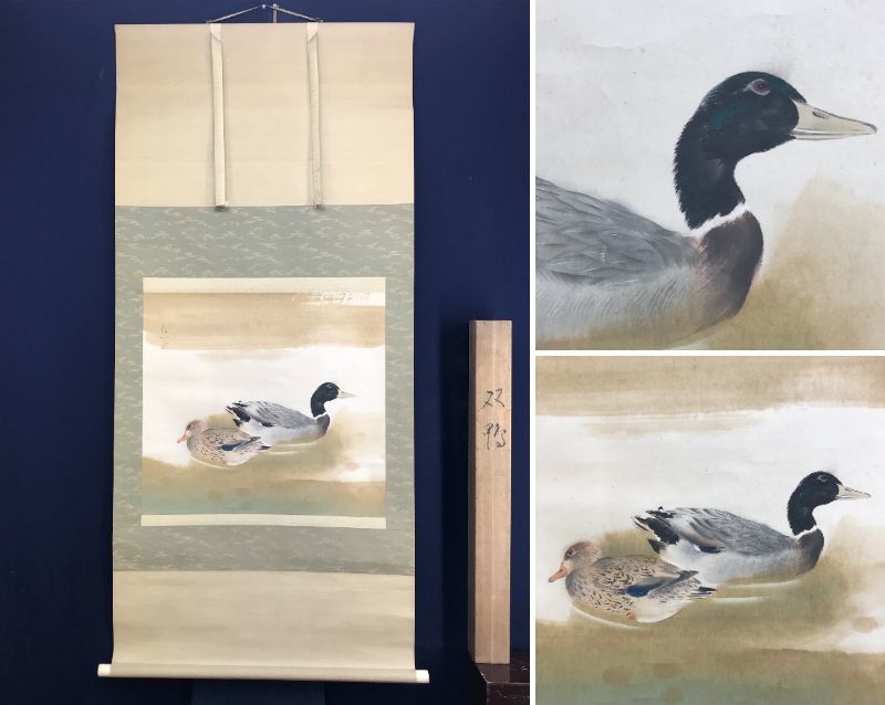 真作/山内信一/双鴨図/横物//掛軸☆宝船☆AD-567