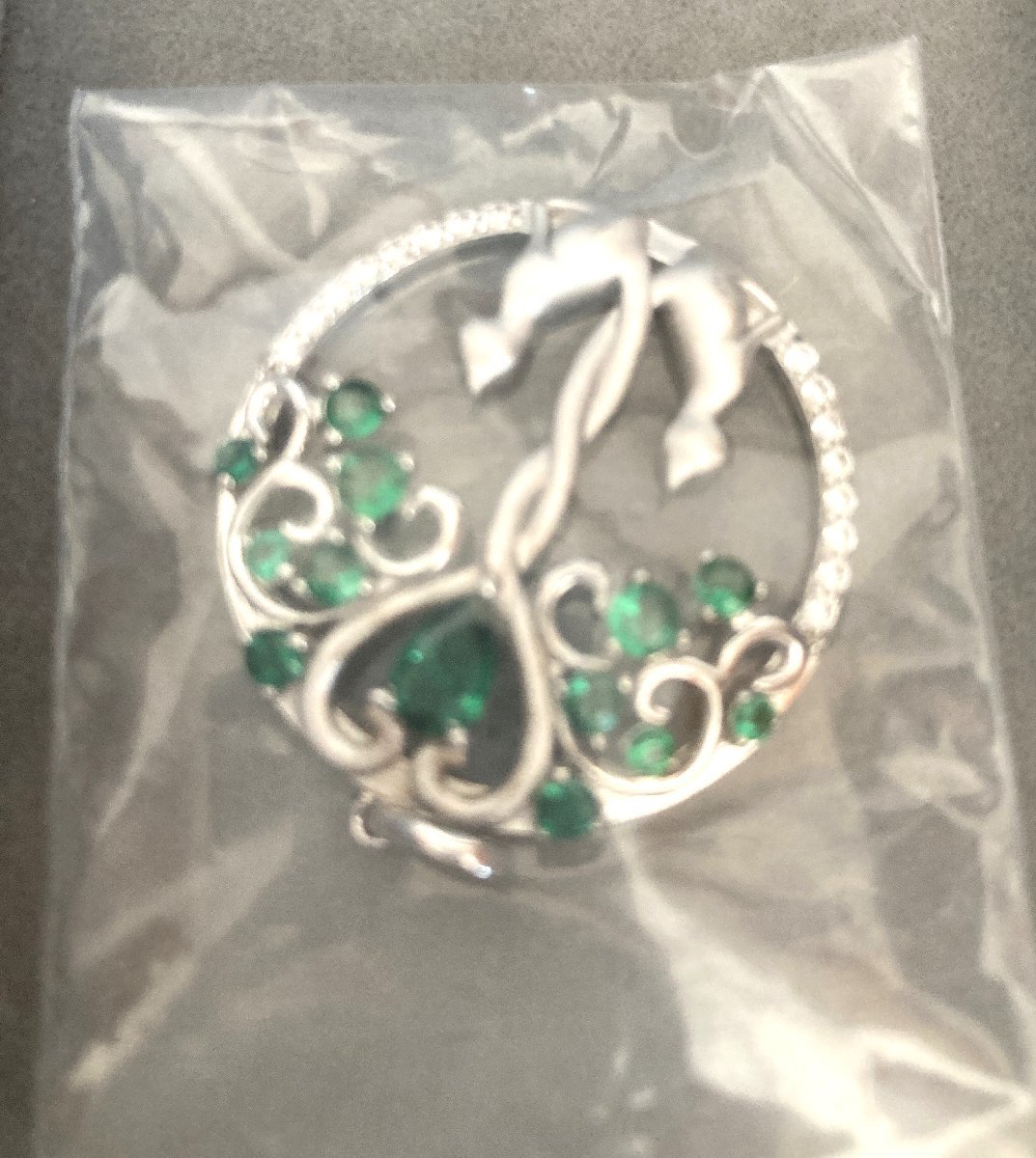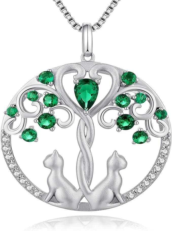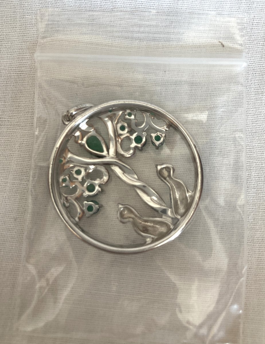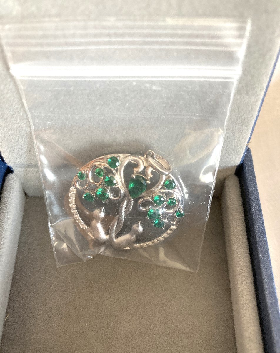猫ちゃんのしっぽでハート型のツリーをモチーフにして木の葉のようなグリーンのデザインのネックレスです。
