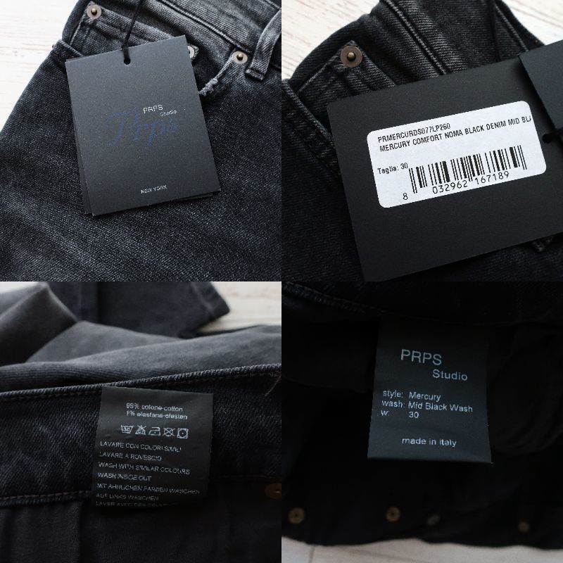 新品 未使用 PRPS イタリア製 高級 スリム ジーンズ Mercury デニム スキニー 細身 美脚 パンツ ブラック 黒 ブラック メンズ W30 Mサイズ