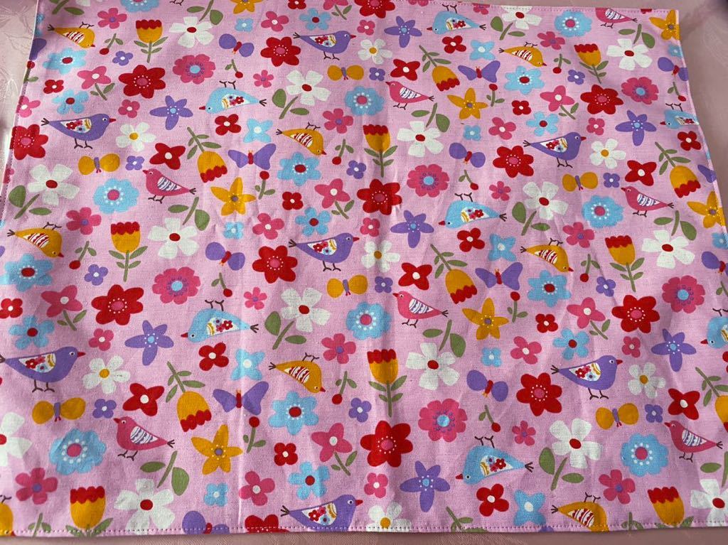 裏付ランチョンマット ハンドメイド  35x45 4枚組 木 花&鳥柄