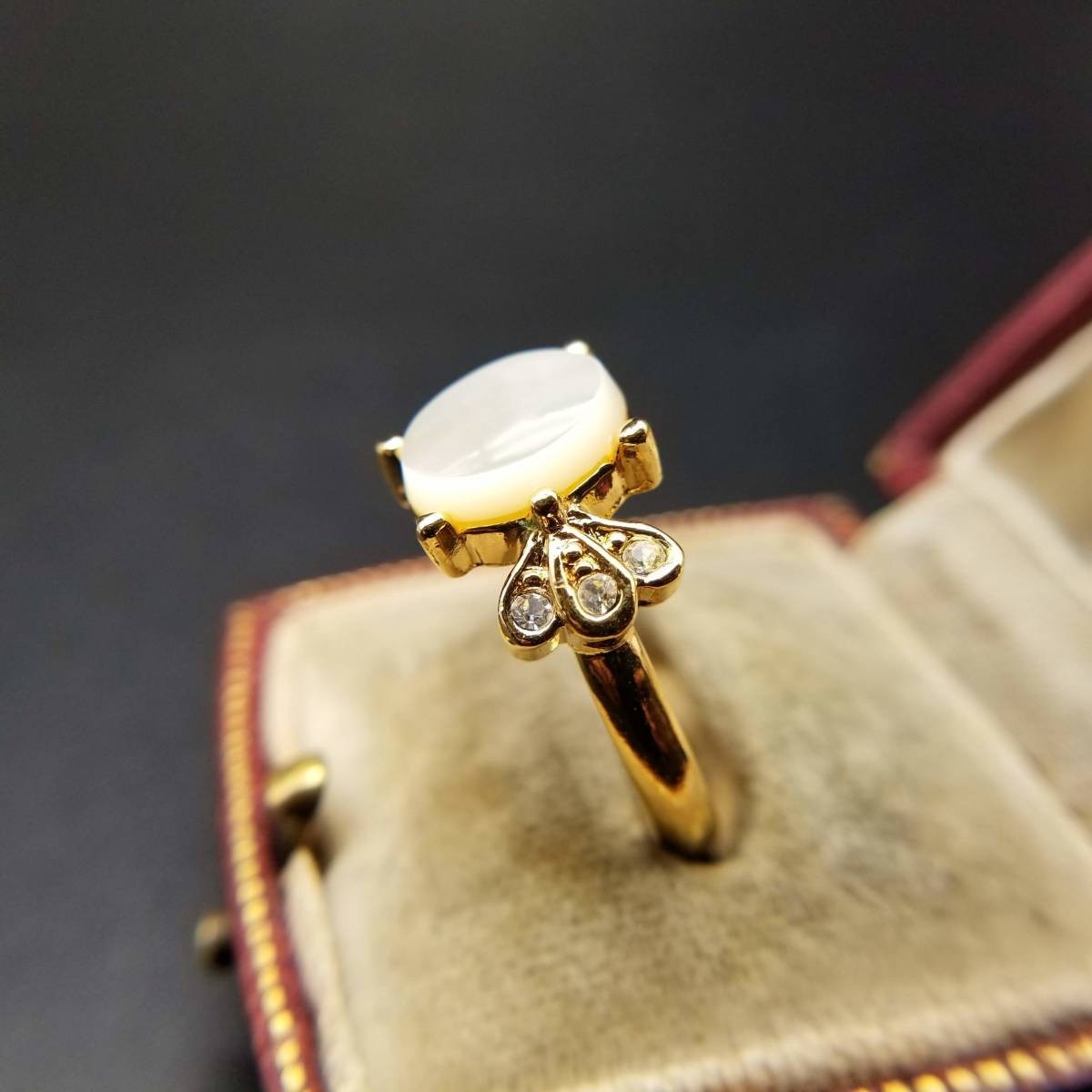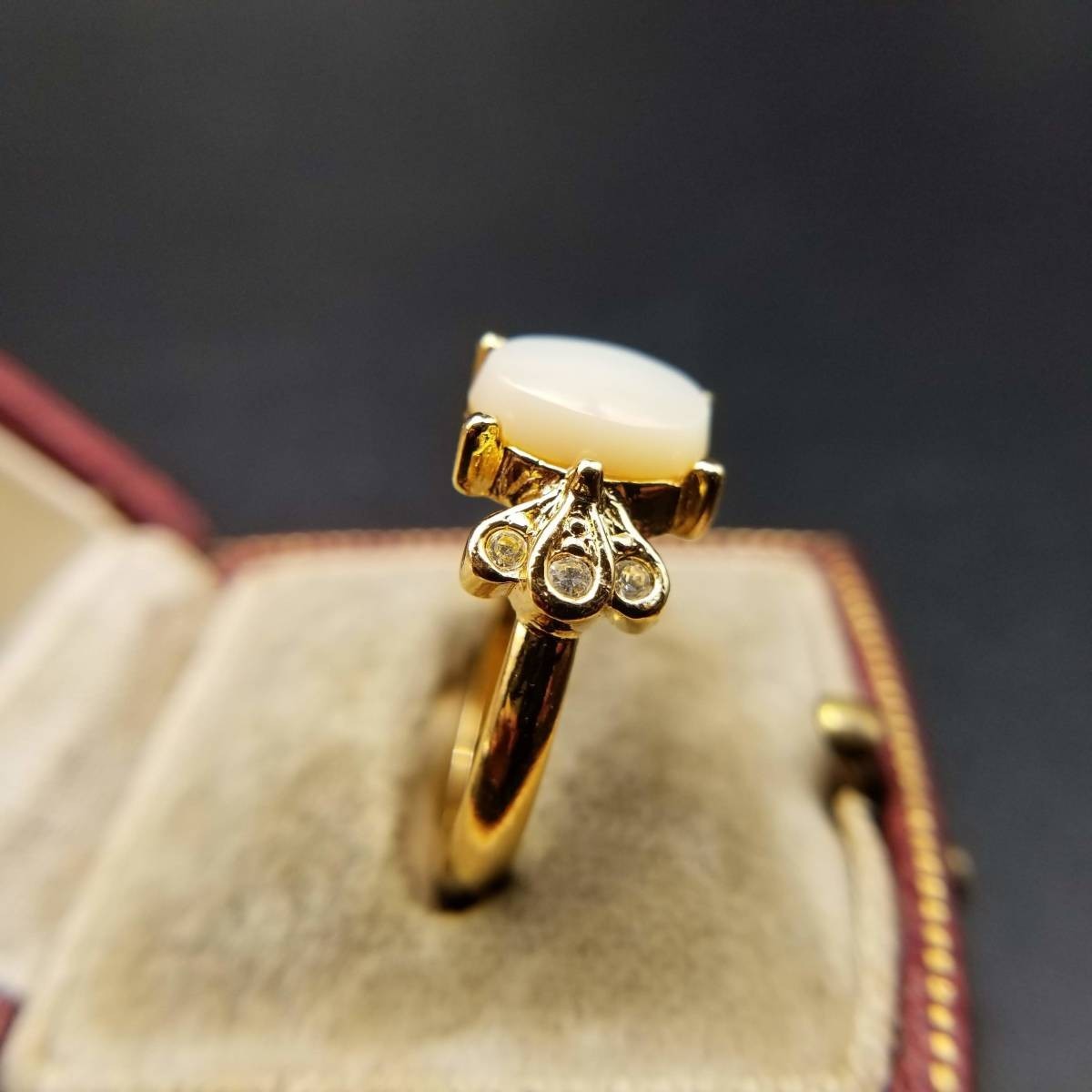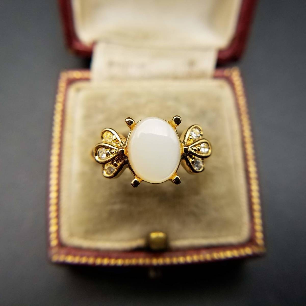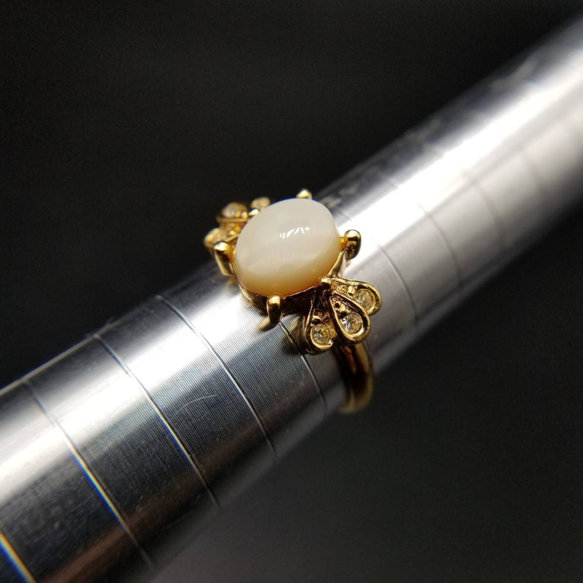 米国ビンテージ リング ホワイト ゴールドトーン アールデコ 昭和レトロ コスチューム ジュエリー イミテーション YNV②9