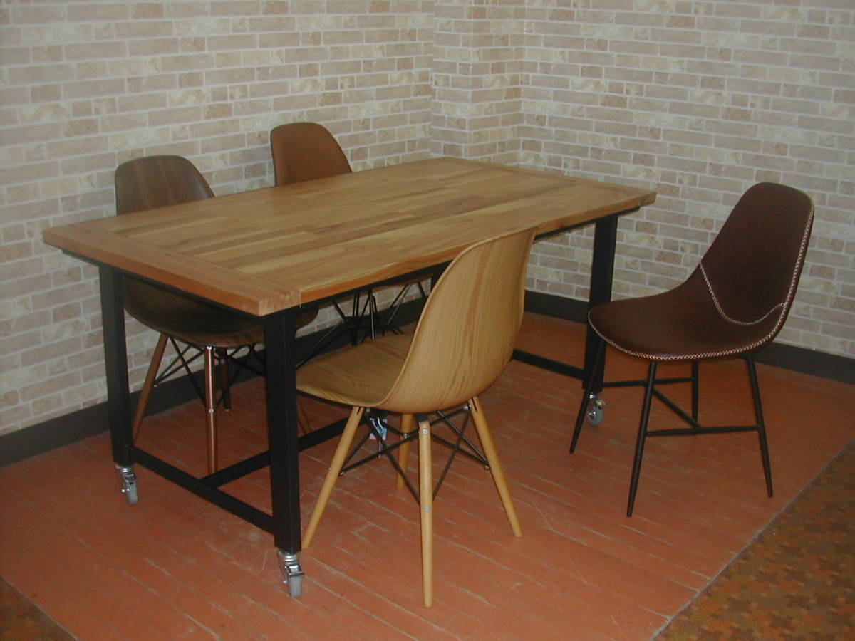 テーブルの脚部は便利なキャスター付き(ストッパー付き)です。チェアは4脚すべてデザイン、サイズ等、若干異なります。