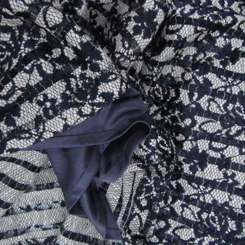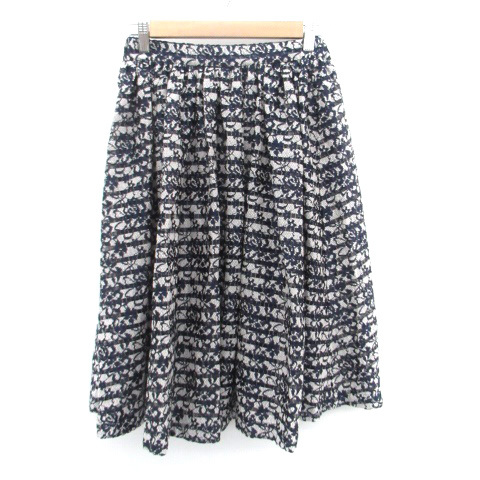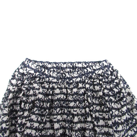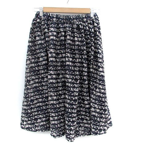 リミテッドエディション LIMITED EDITION フレアスカート ミモレ丈 総レース 花柄 ボーダー柄 38 オフホワイト 紺 ネイビー レディース