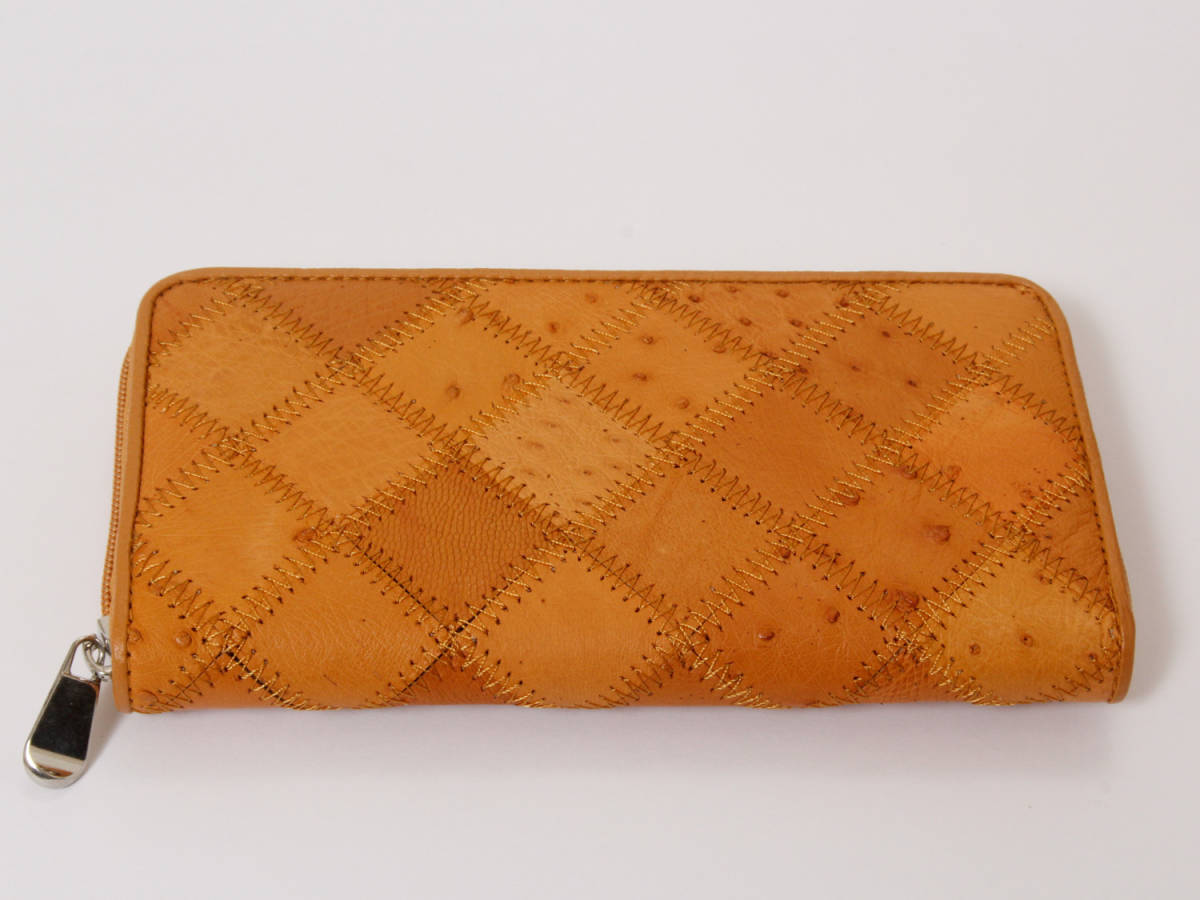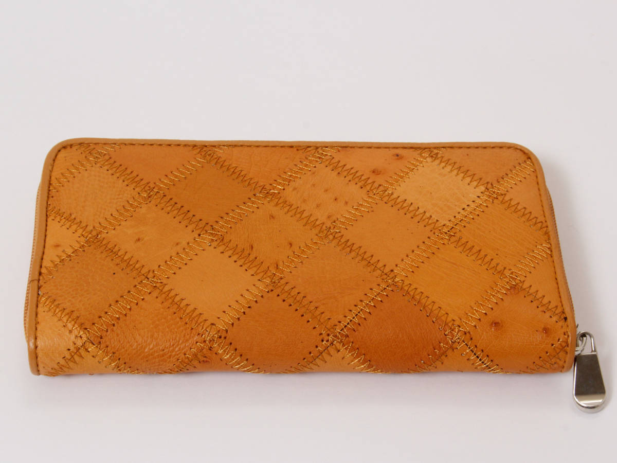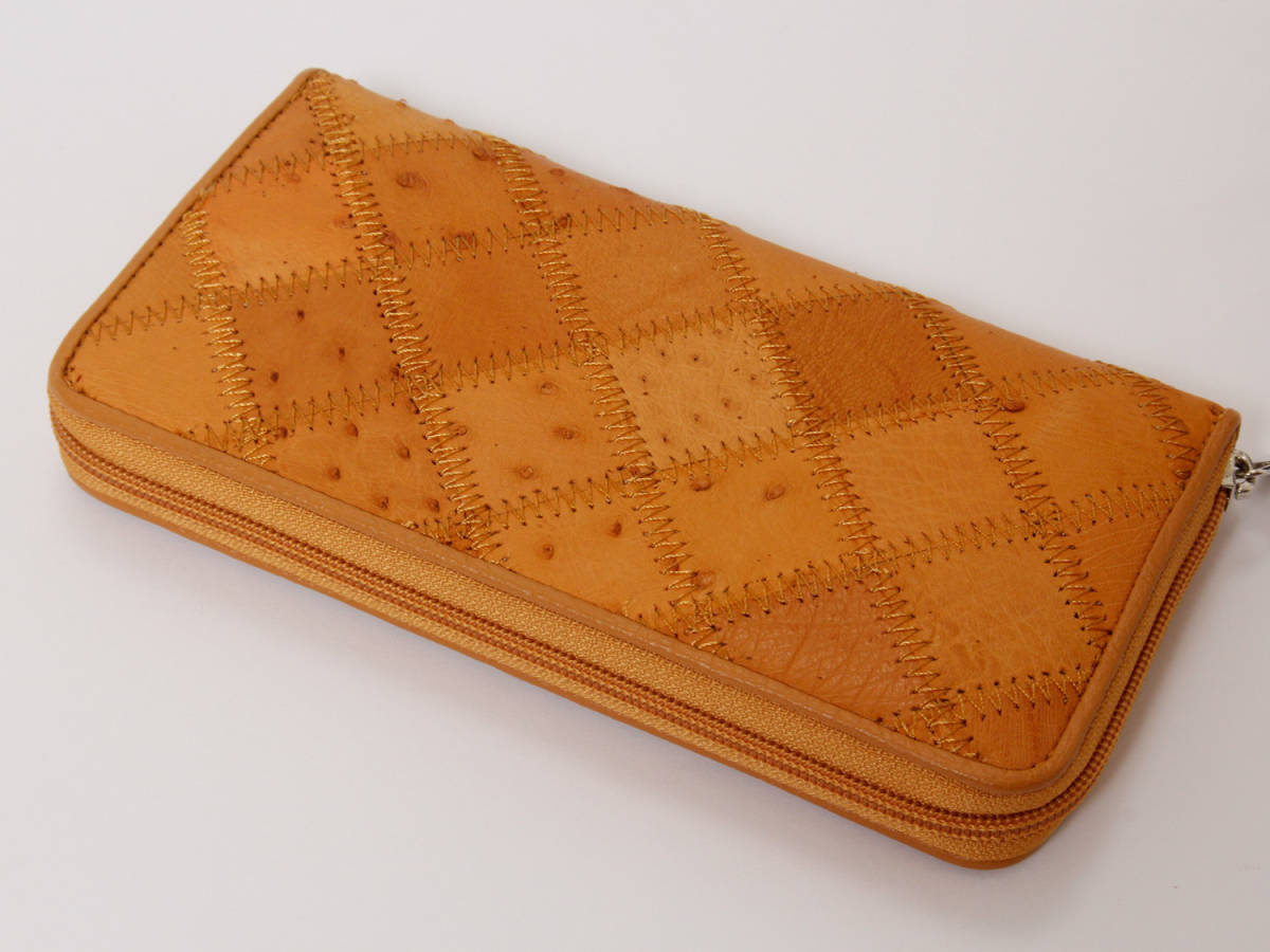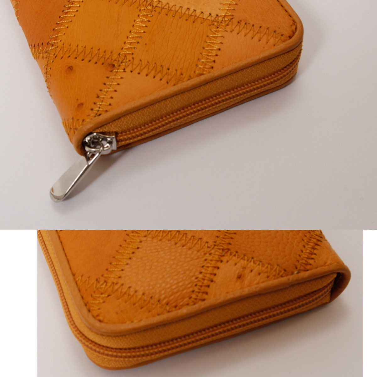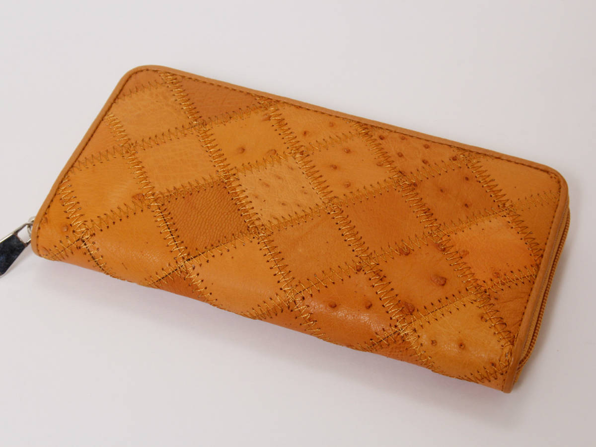 ☆未使用☆ オーストリッチ ラウンド 長財布 パッチワーク風