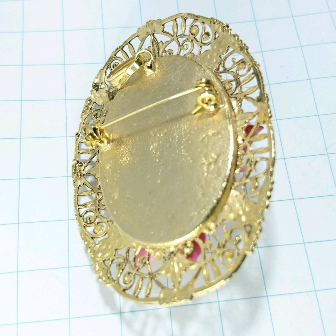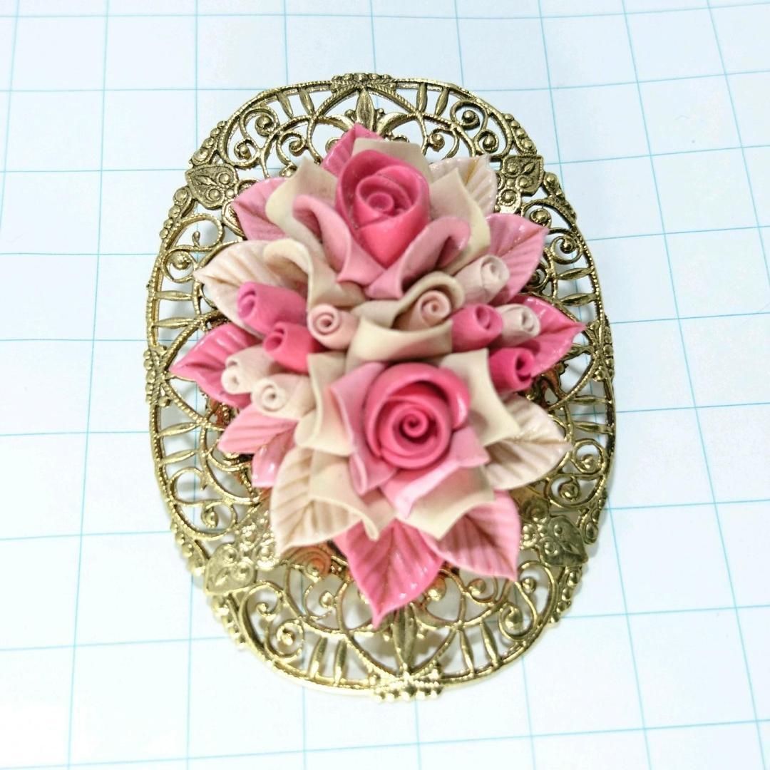 送料無料)ビンテージ☆薔薇モチーフ ピンク☆アンティークブローチ A15087
