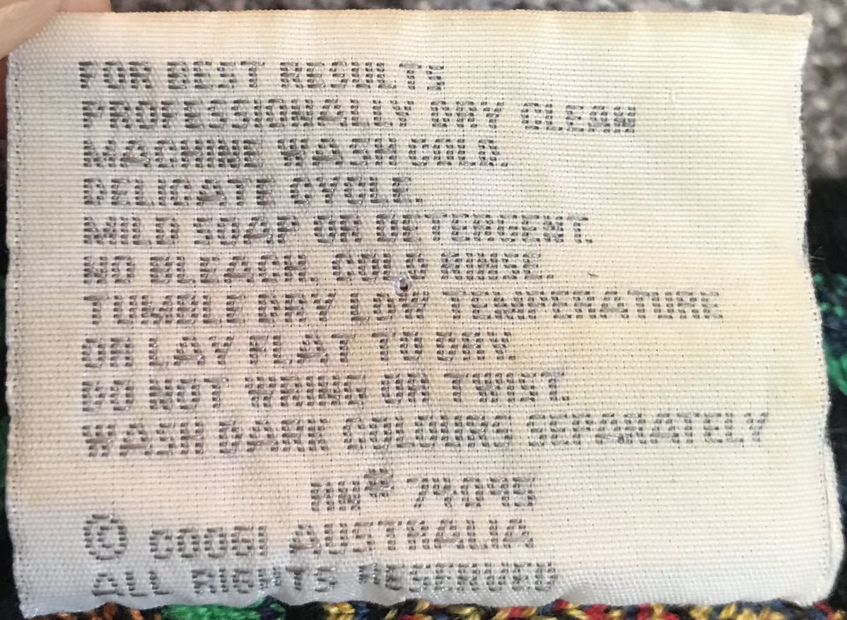 デザインや洋服作りのできない素人の当方ですら感じ取れる、クージーの世界観が凝縮された異次元のセンスに度肝を抜かれる1枚で、単なる洋服の枠を超える様なアート作品といっても差し支えない「幻の逸品」でしょう。