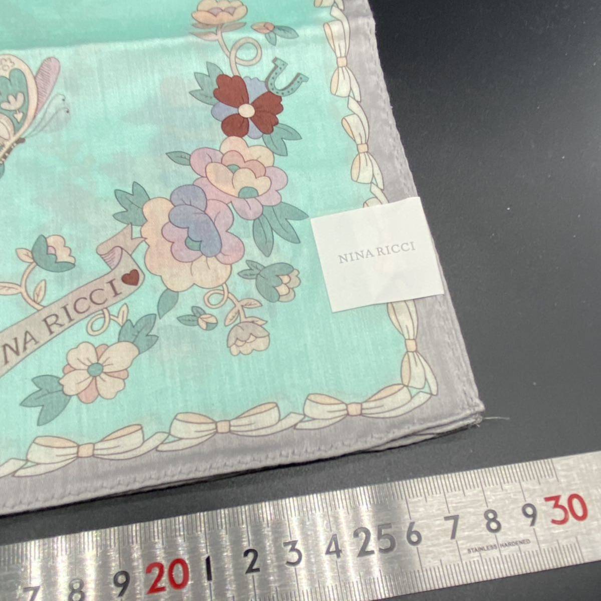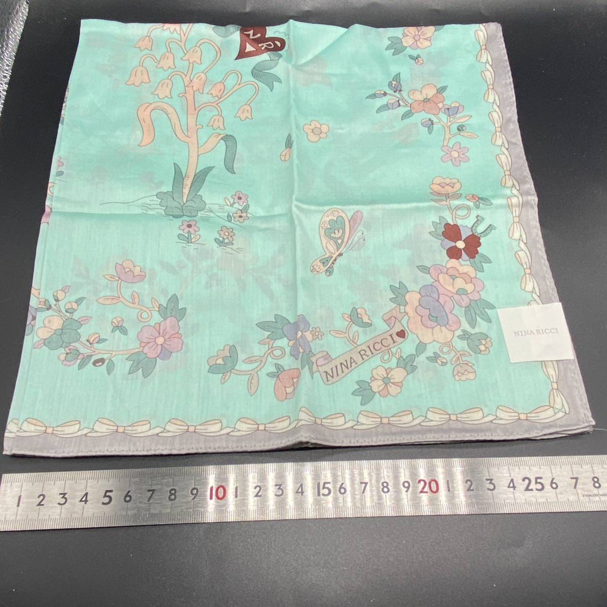 NINA RICCI ニナリッチ ハンカチ 大きめ グリーン ふちグレー no.29