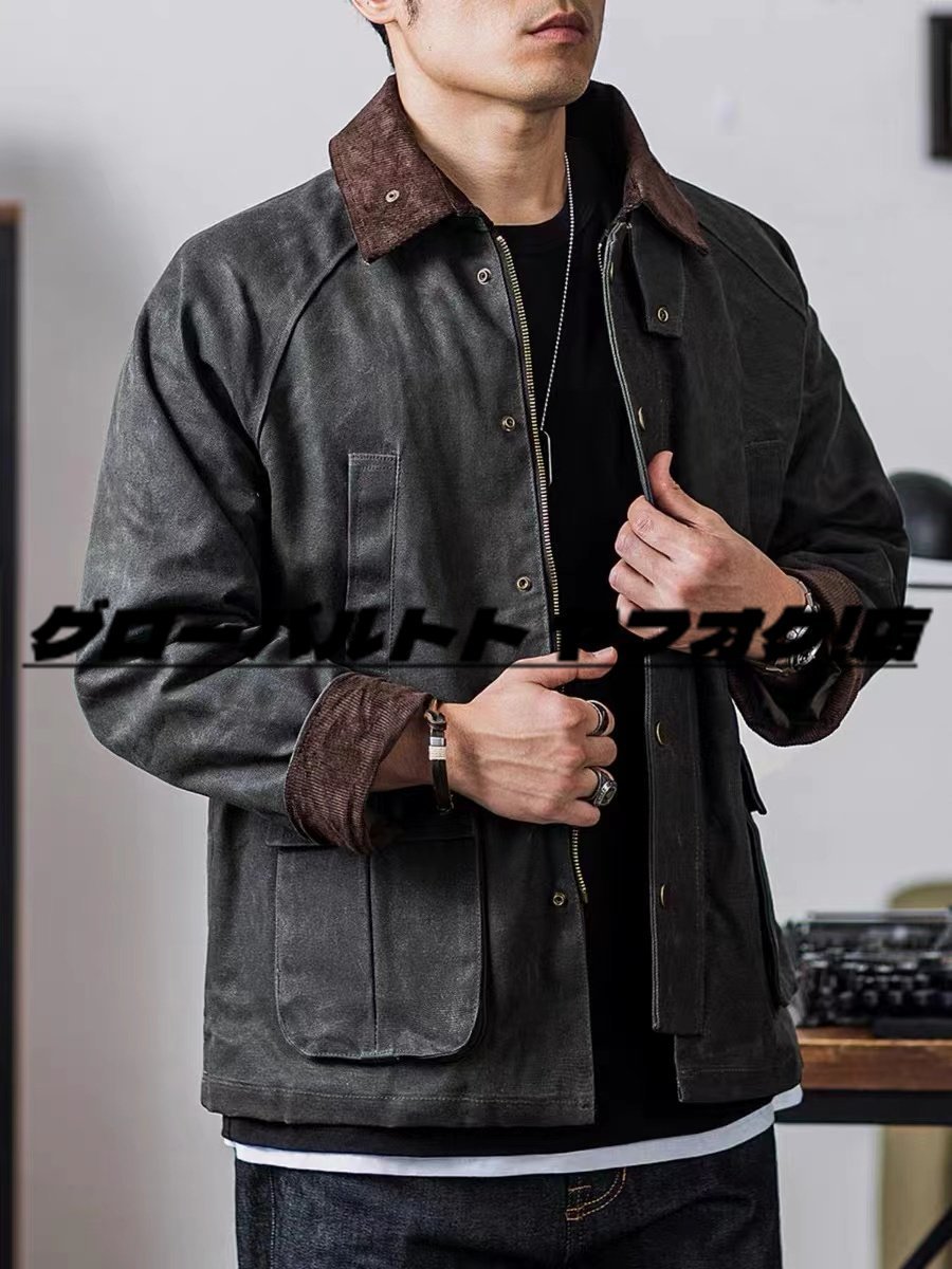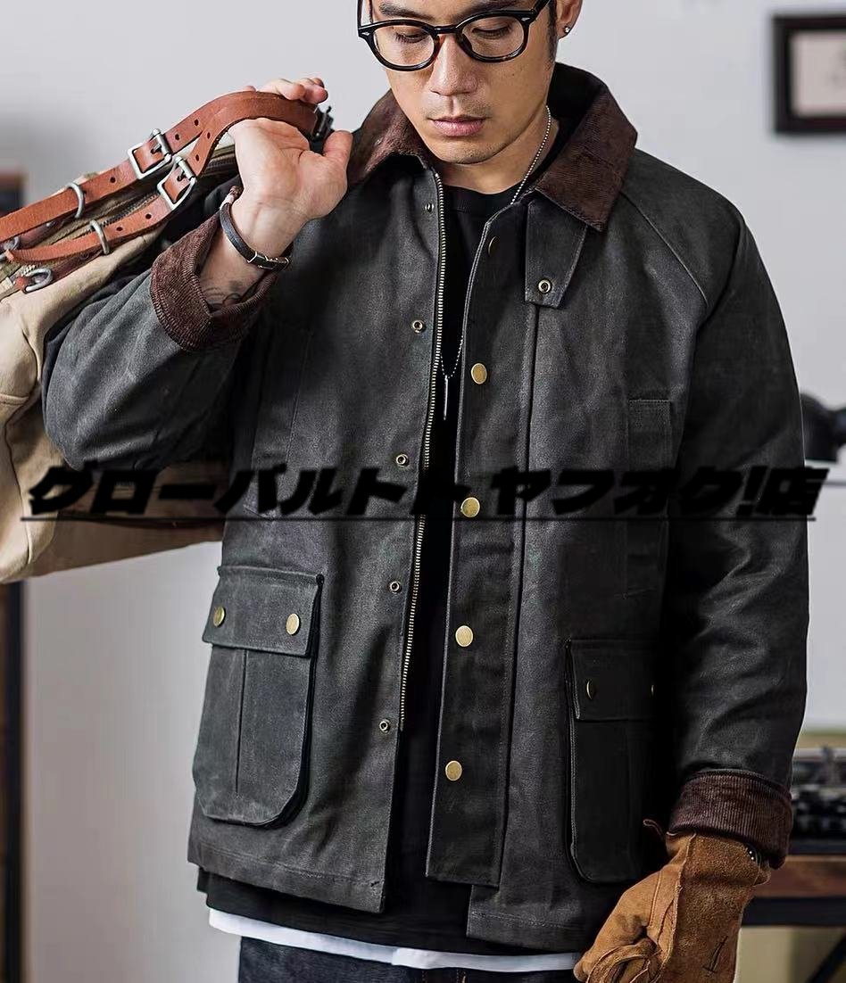 高級感満載 復刻デザイン ワックス キャンバスコットン ワークジャケット ダークグリーン ブルゾン カバーオールM~2XL