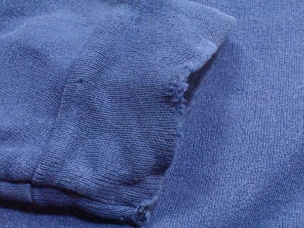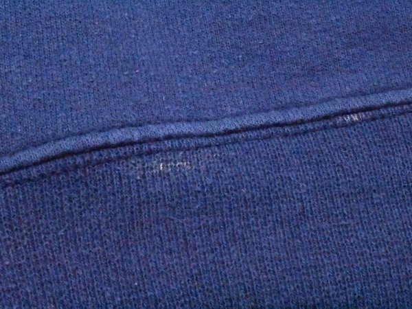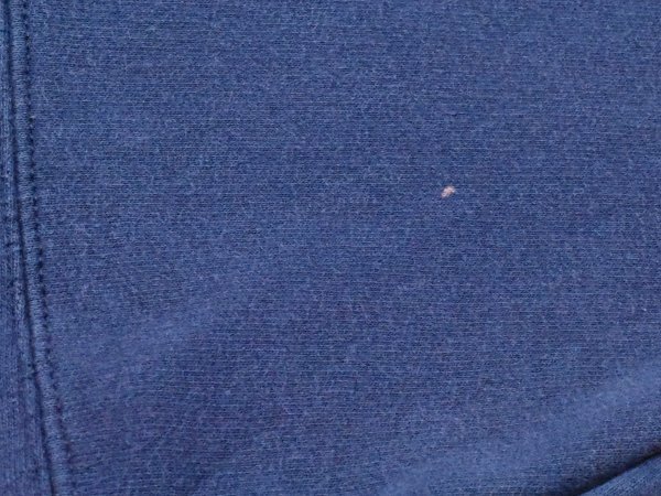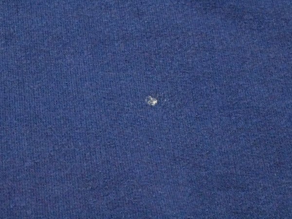 左袖付け根付近に点の色抜け、背面裾リブ分に小さな色抜けがあります(写真6,7枚目参照)。