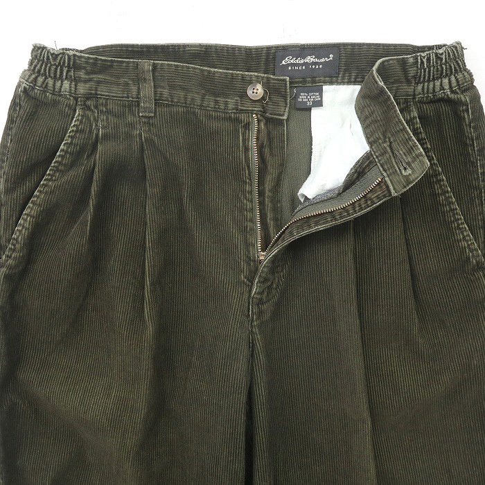 古着 エディーバウアー 太畝 コーデュロイパンツ ツータック グリーン サイズ表記:33 gd74416