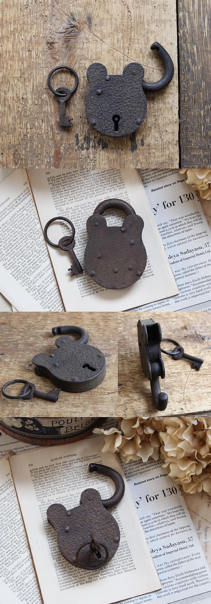 イギリスから直輸入したシャビーな 鍵付きパドロック。動作確認済み。かわいいクマさん型です!