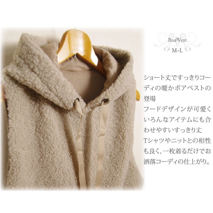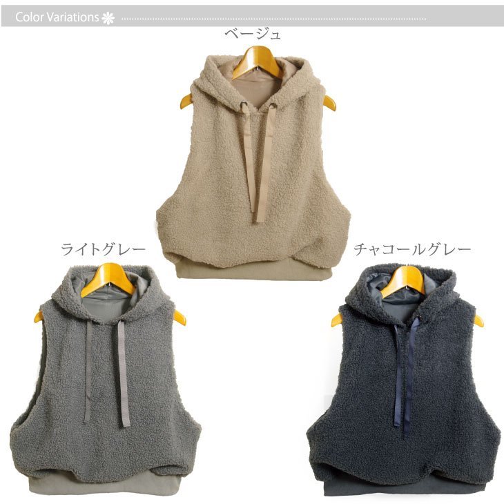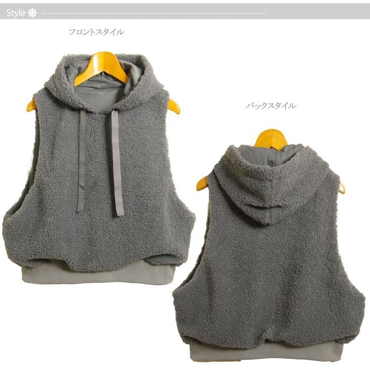 ベスト 秋冬 レディース ボア パーカー フード ショート丈 チャコールグレー M-L 新品