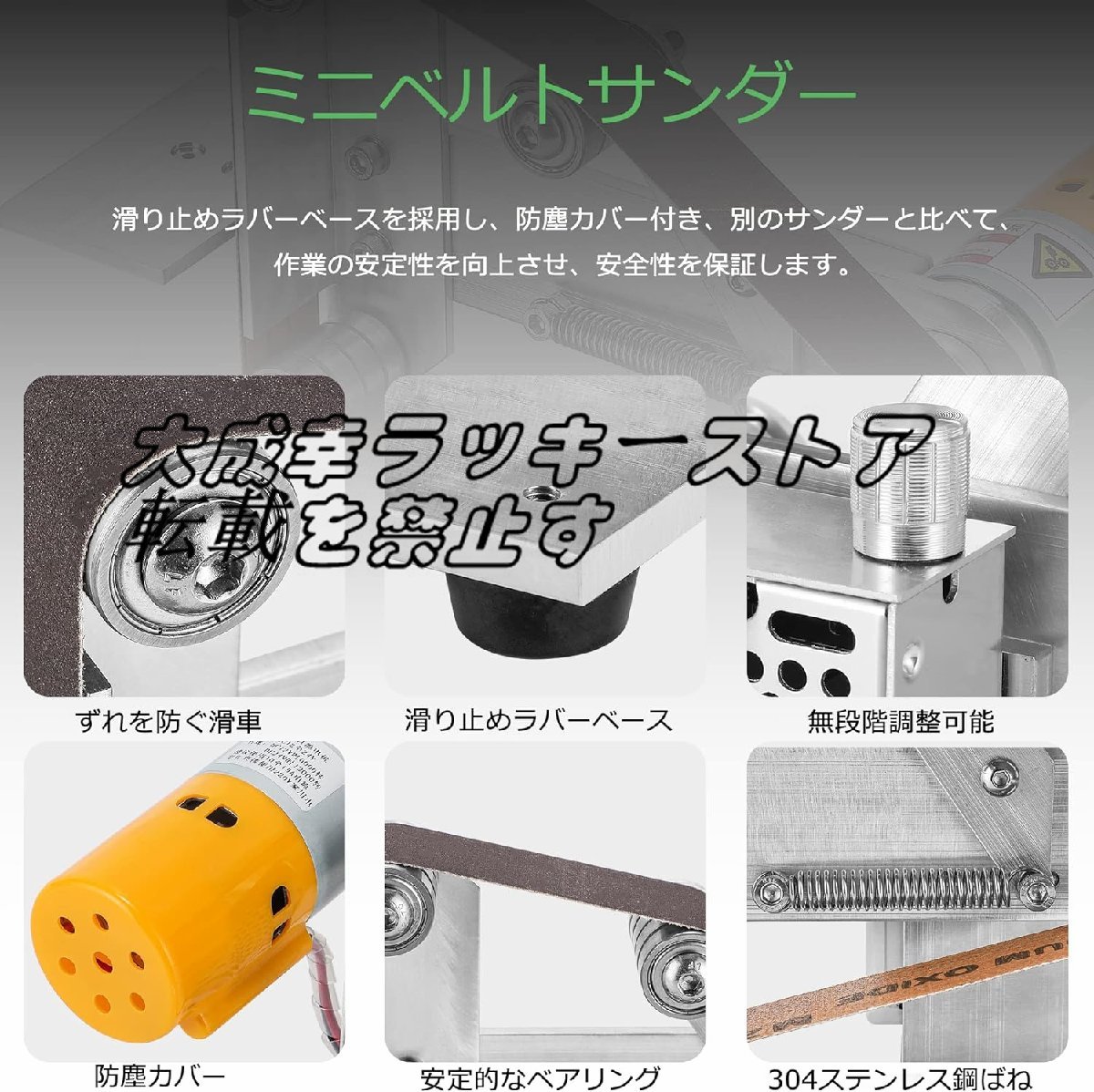 品質保証 ミニベルトサンダー 電気サンダー 卓上型 360W 無段階変速 12000rpm ベルト9本付き 木材/金属/基板 533*30mm 家庭用 研磨 S400