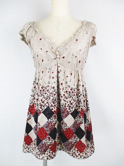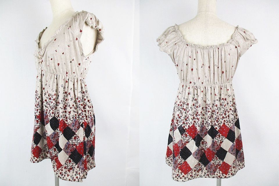マウスバレー MOUTHvalley カットソー フレンチ袖 ギャザー ベロア 花柄 グレー系 M 春秋 レディース 【ベクトル 古着】