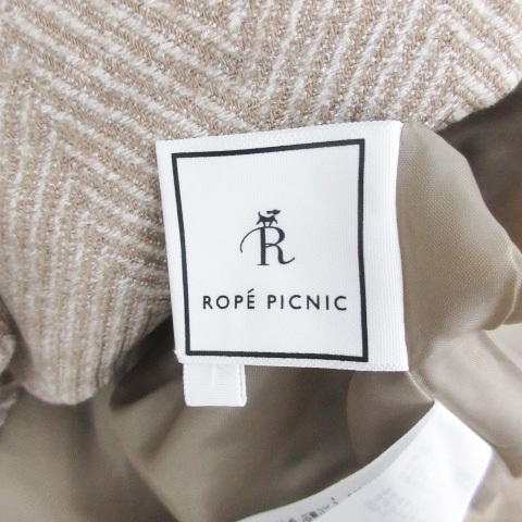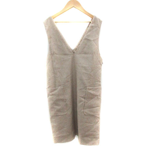 ロペピクニック ROPE Picnic ジャンパースカート ワンピース ひざ丈 Vネック ヘリンボーン柄 36 ベージュ /YM25 レディース