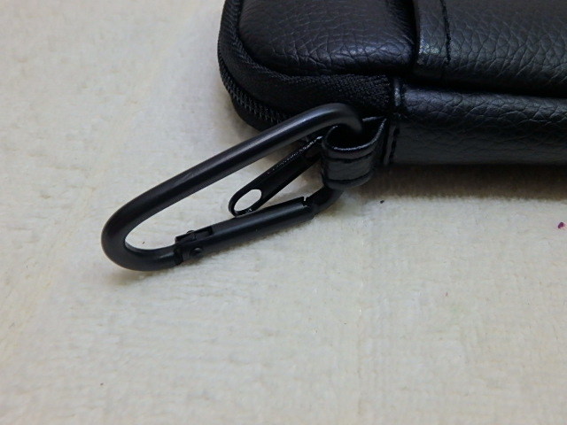 n311u 黒 ポーチ 無地 ケース ファスナー カラビナ付き 小物入れ 中古