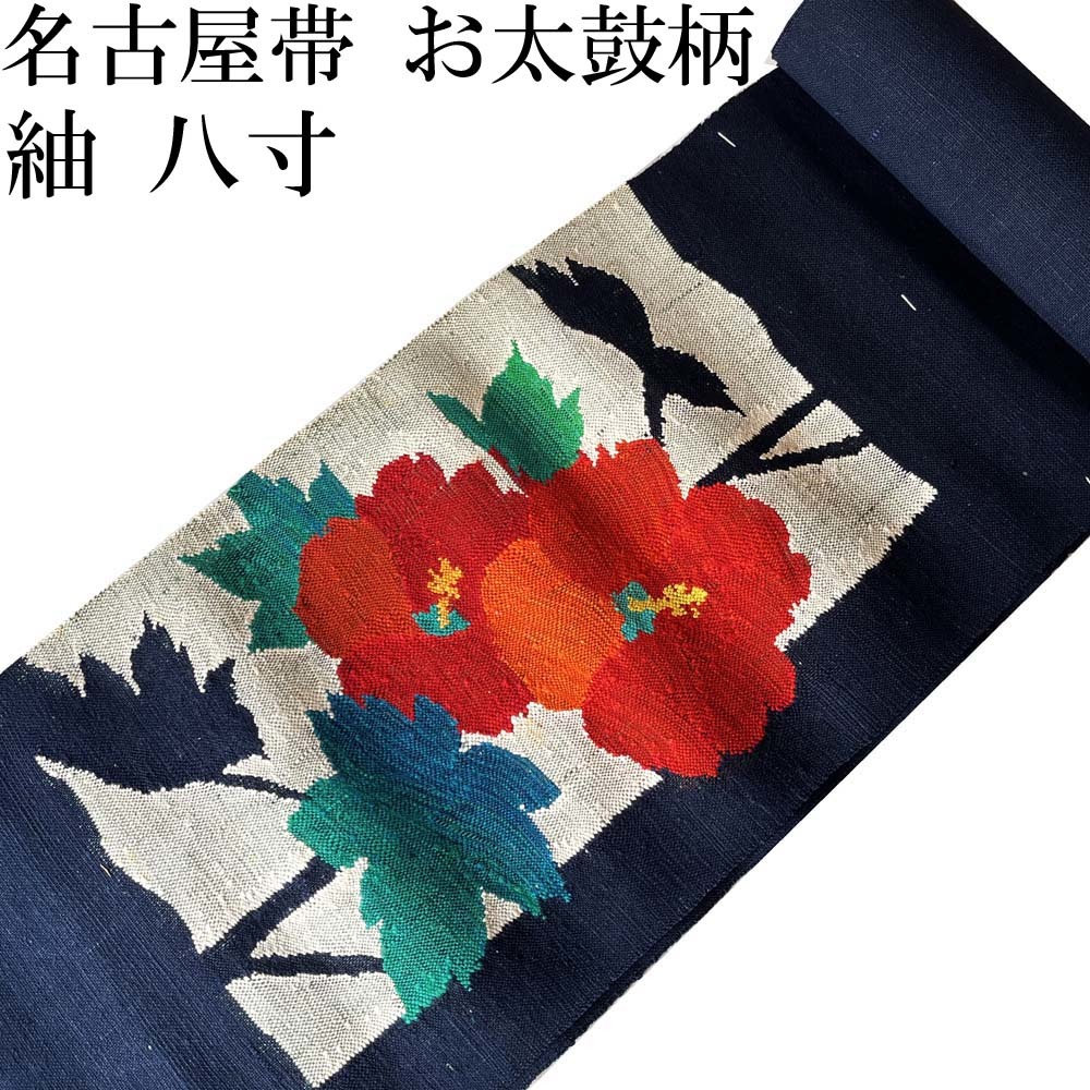 未仕立て品 正絹(絹100%) 名古屋帯 紬 八寸 お太鼓柄