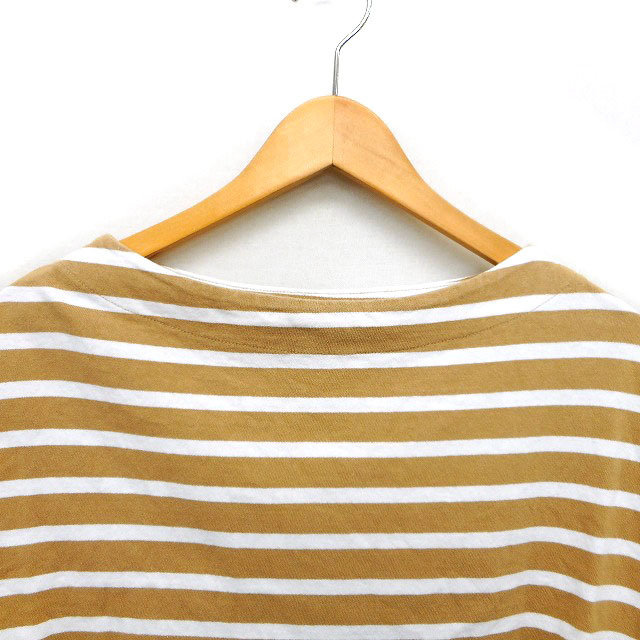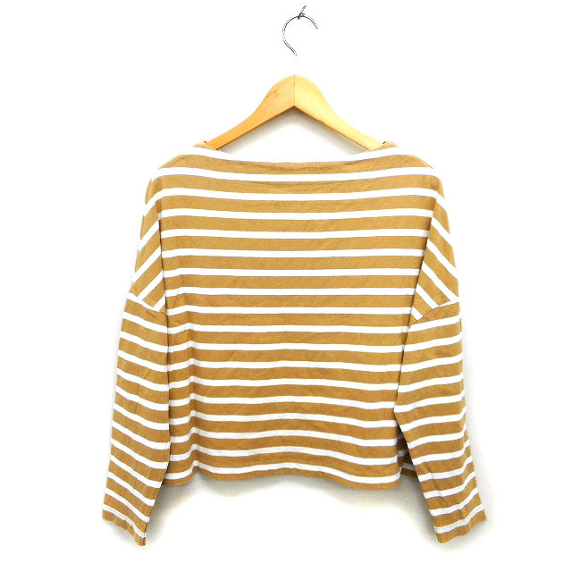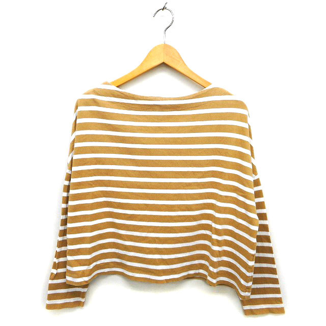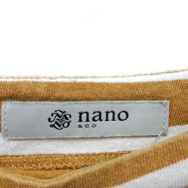 ナノ&コー nano&co カットソー ボートネック クロップド ボーダー コットン 綿 ドロップショルダー 長袖 F キャメル /NT12 レディース