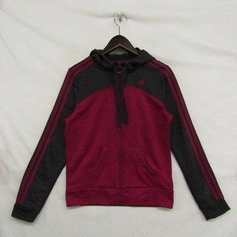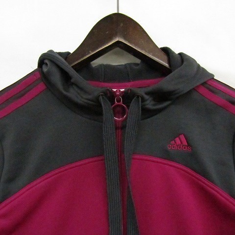 アディダス サイズ L フルジップ パーカー トレーニング ジャケット 裏起毛 ポリ 100 グレー ピンク adidas 古着 1JU2205