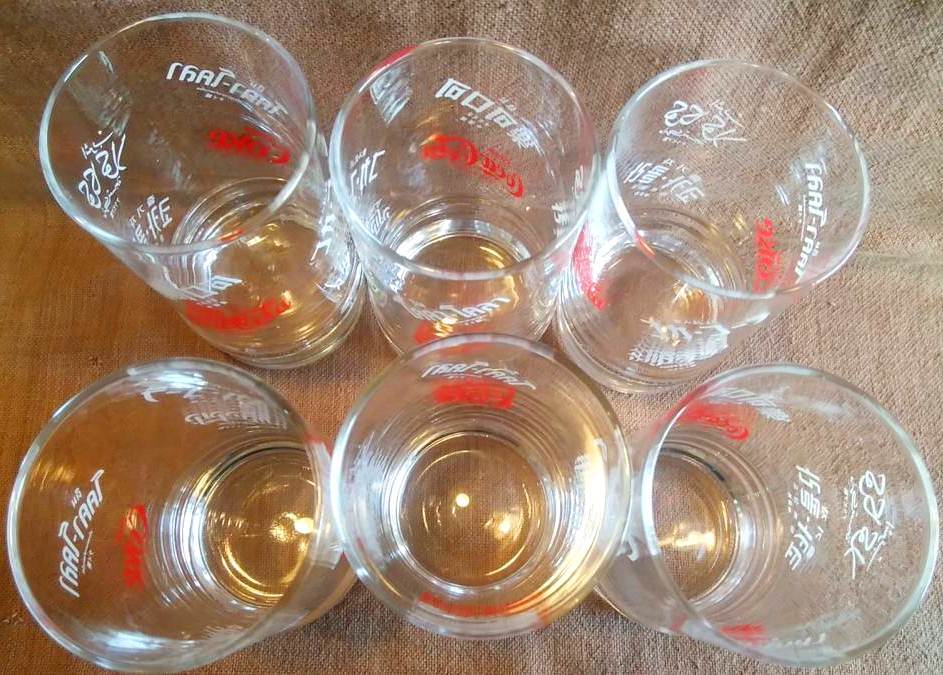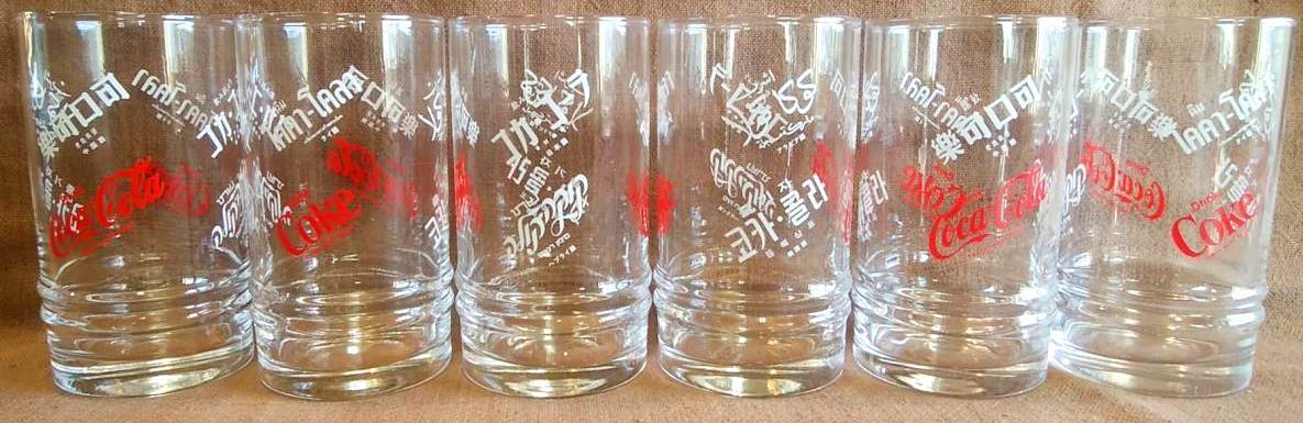 昭和 レトロ 当時物 コカコーラ ワールドグラス 6個 セット まとめて まとめ売り ガラス コップ 高さ約12cm 飲み口直径約6.5cm