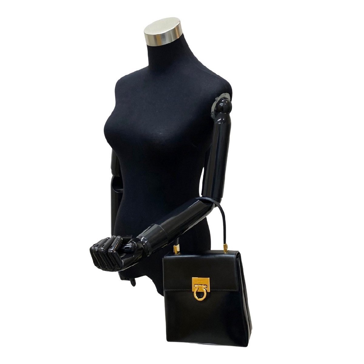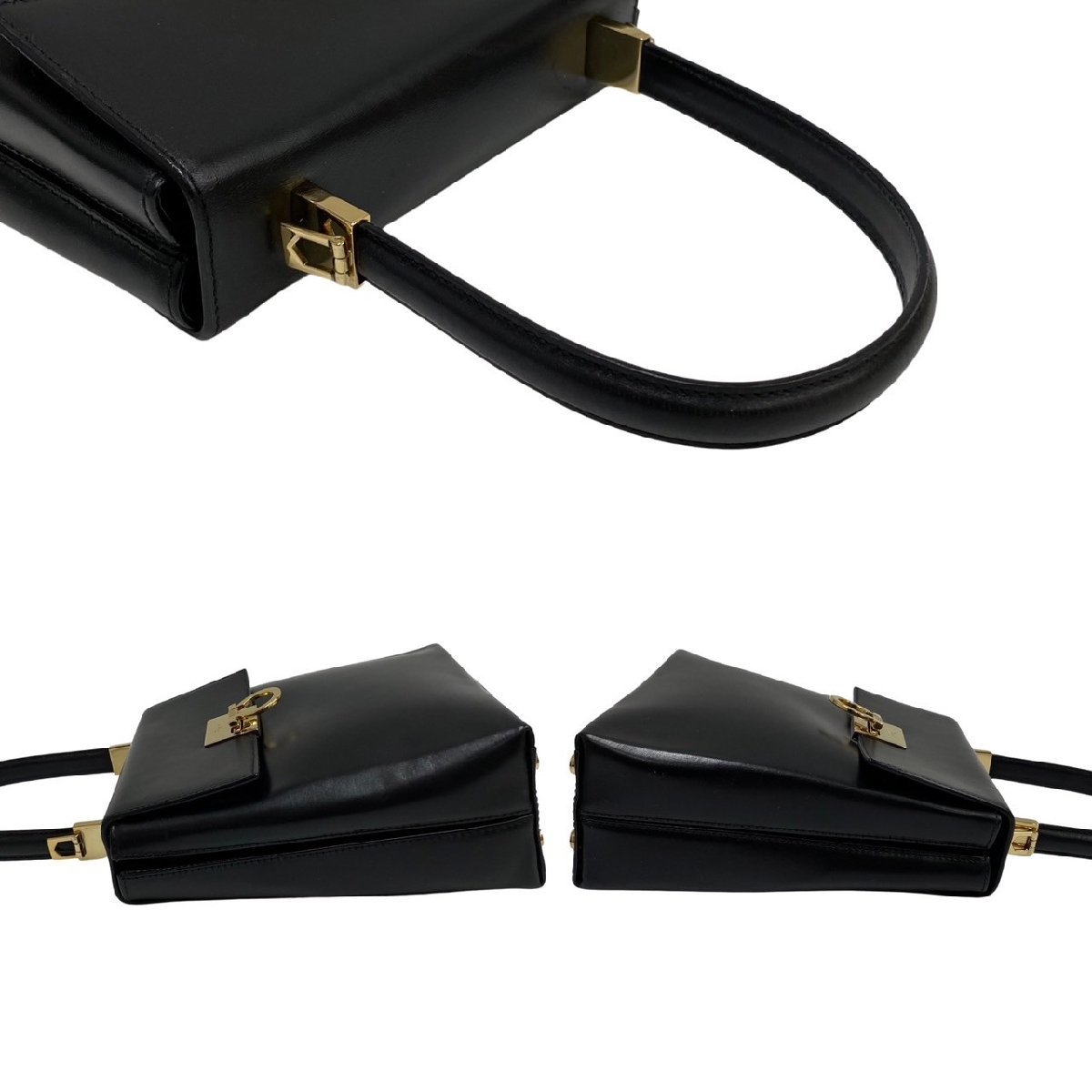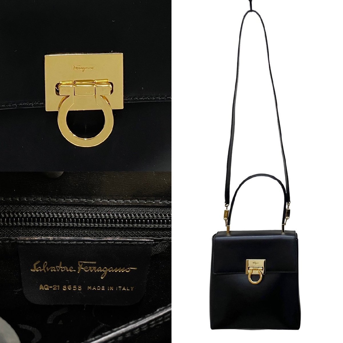 極 美品 Salvatore Ferragamo サルヴァトーレフェラガモ ガンチーニ カーフ レザー 2way ハンドバッグ ショルダーバッグ ブラック 54453