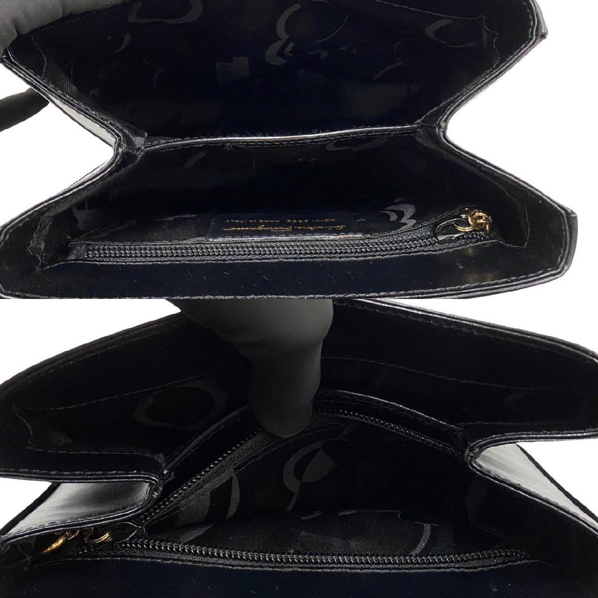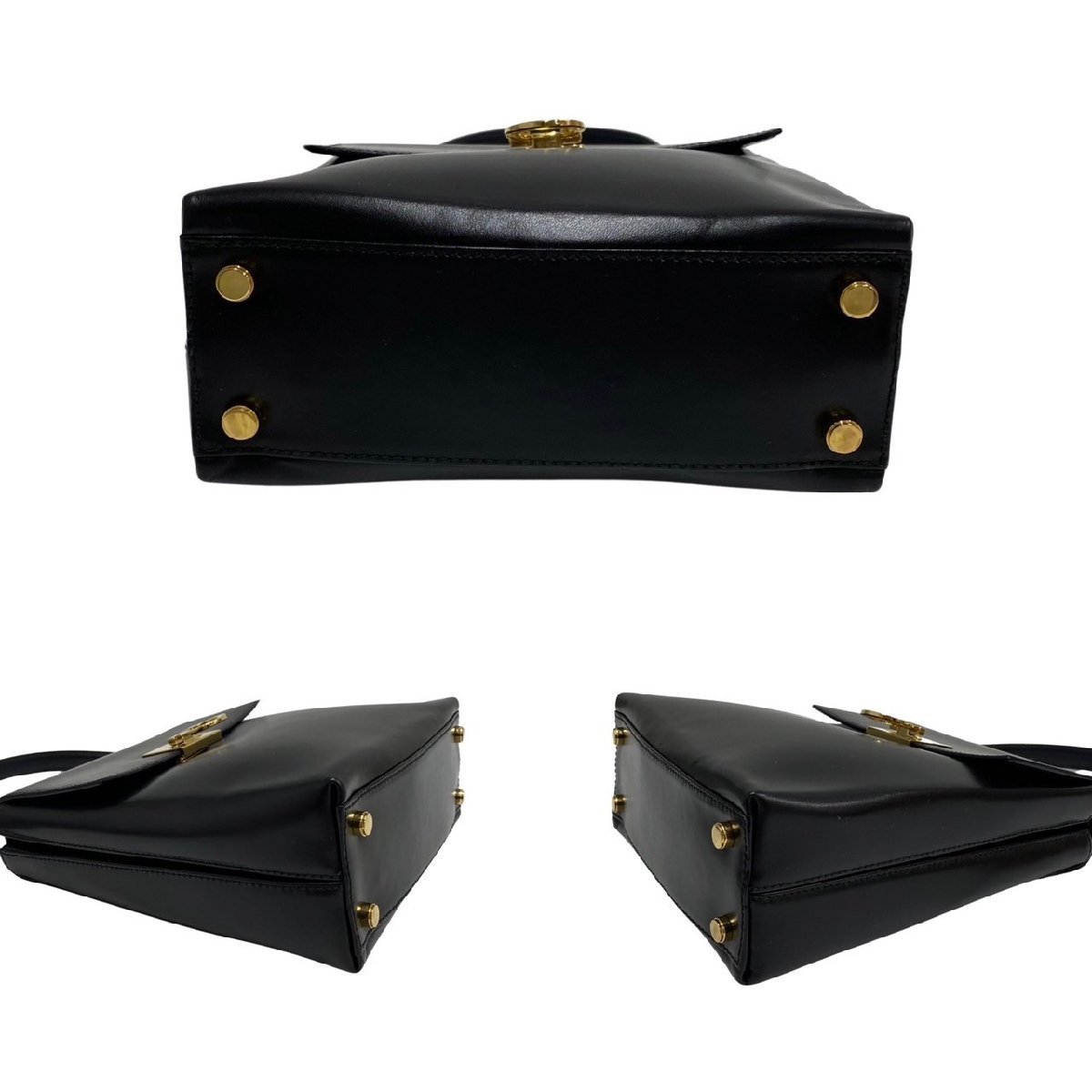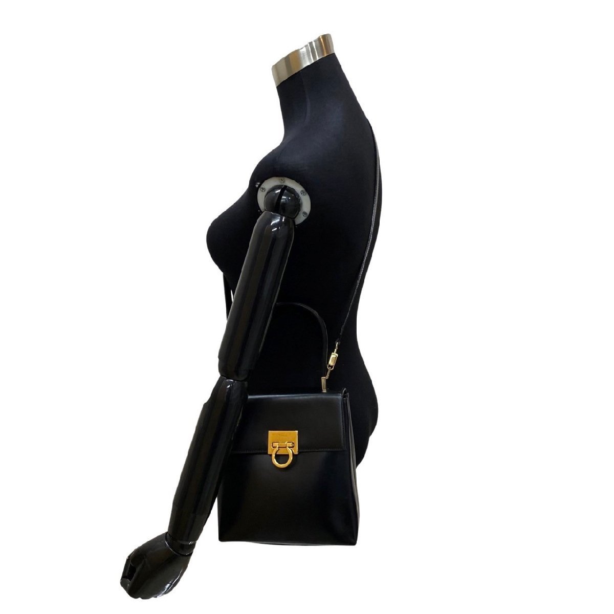 極 美品 Salvatore Ferragamo サルヴァトーレフェラガモ ガンチーニ カーフ レザー 2way ハンドバッグ ショルダーバッグ ブラック 54453