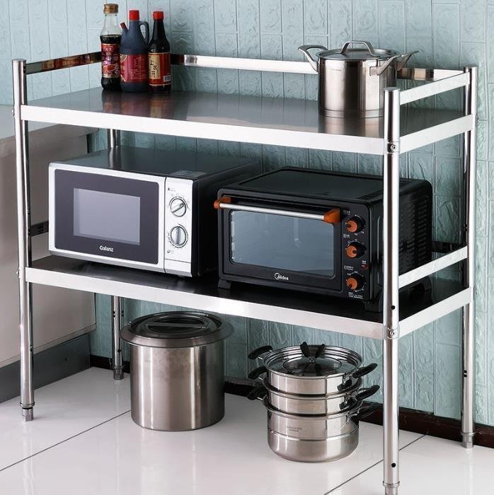 人気推薦★実用品★ガード付きステンレス棚着地多層台所用品小百貨店電子レンジ収納棚