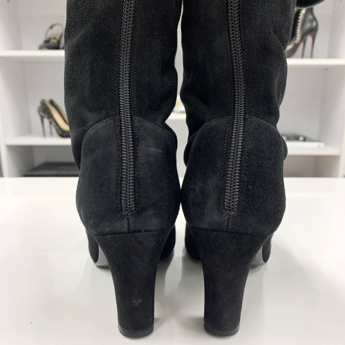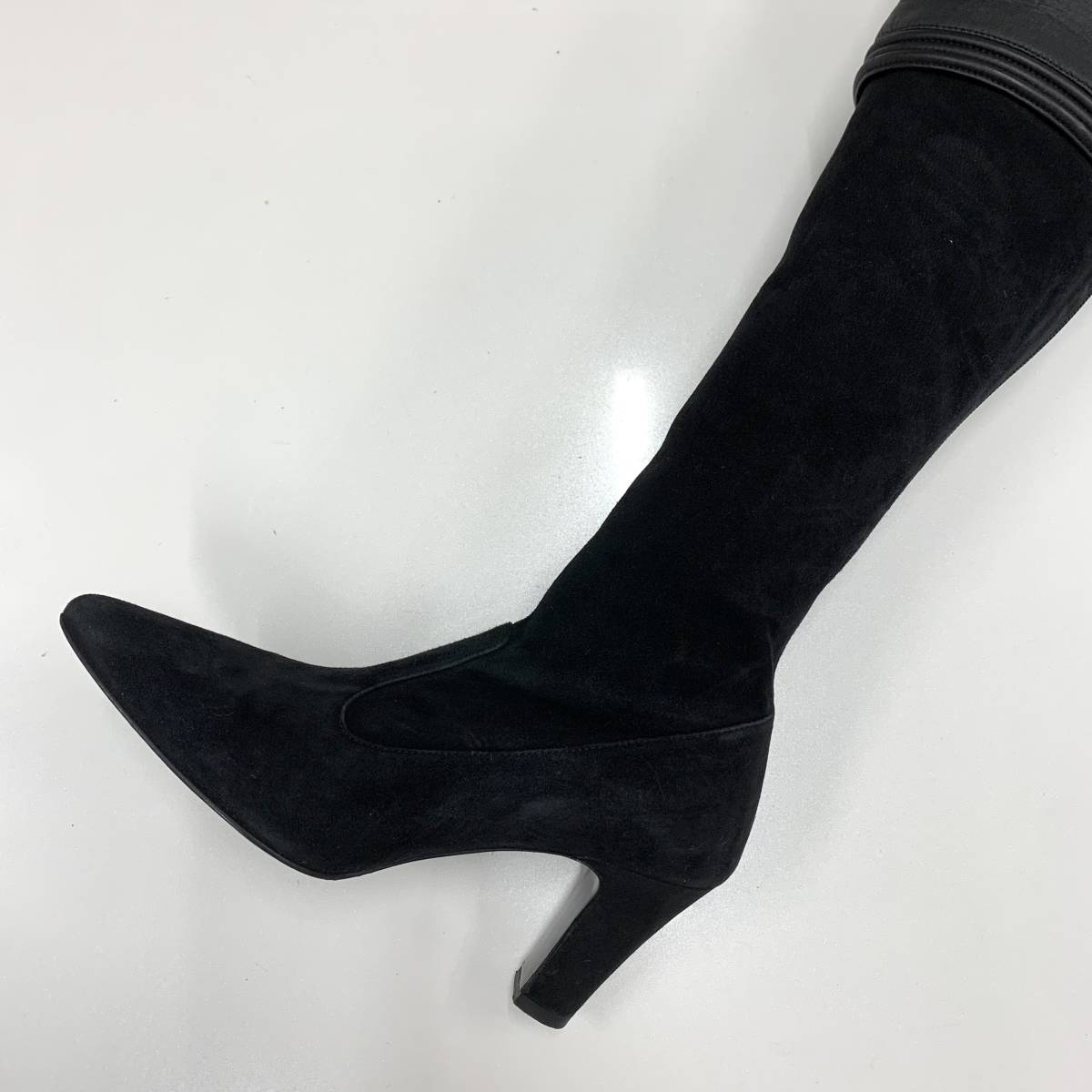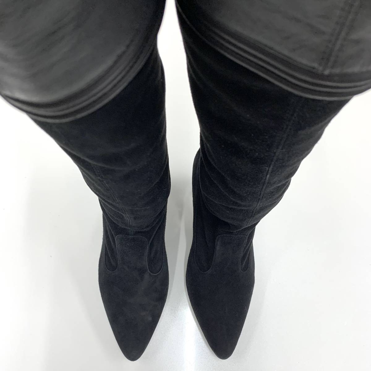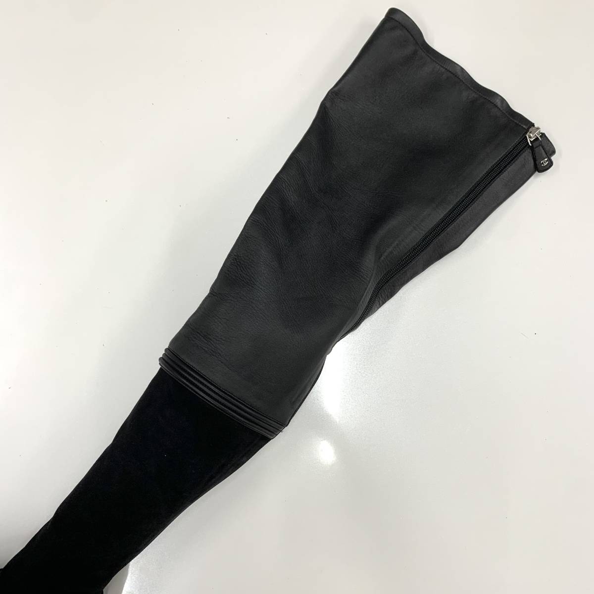 6090 シャネル レザー スエード サイハイブーツ ブラック