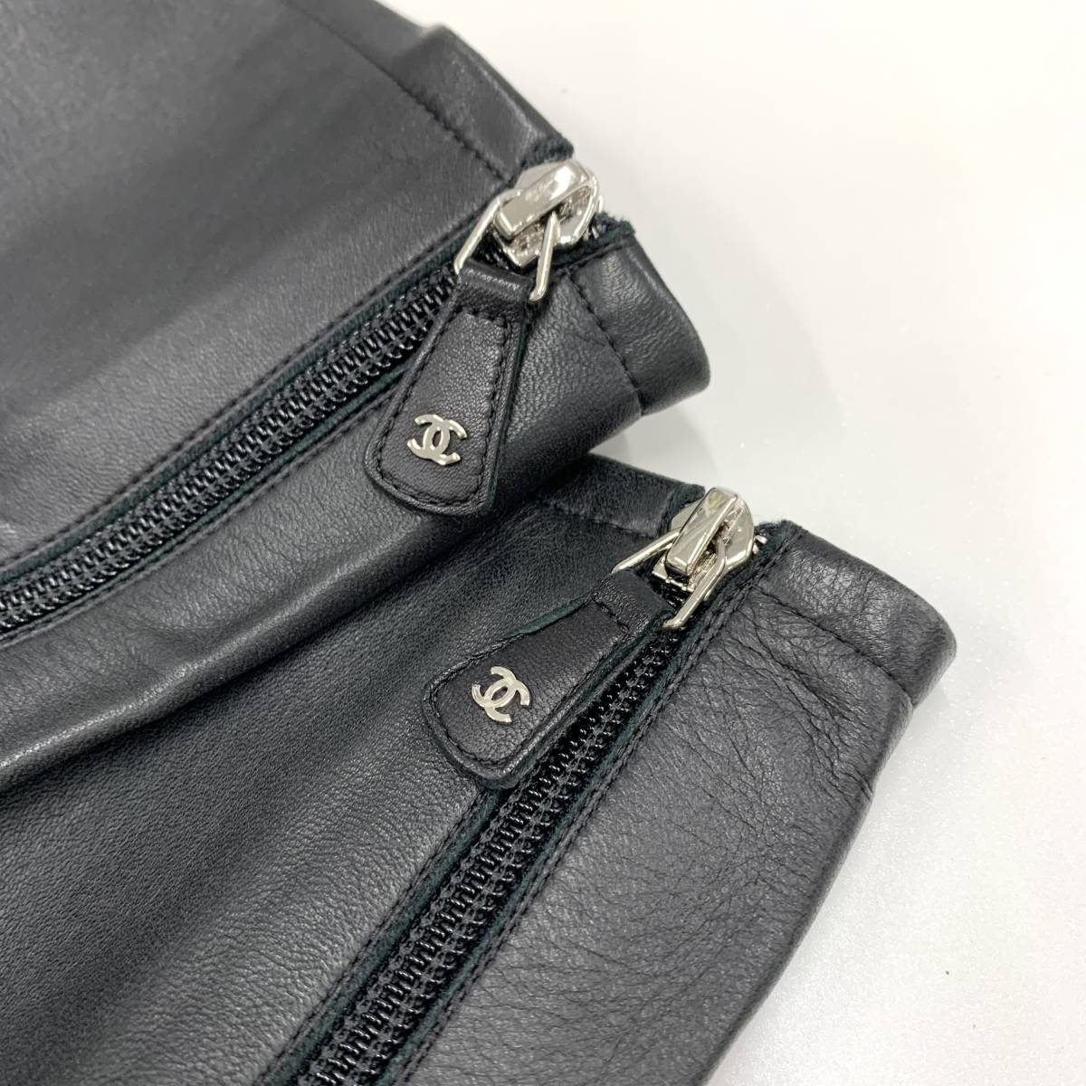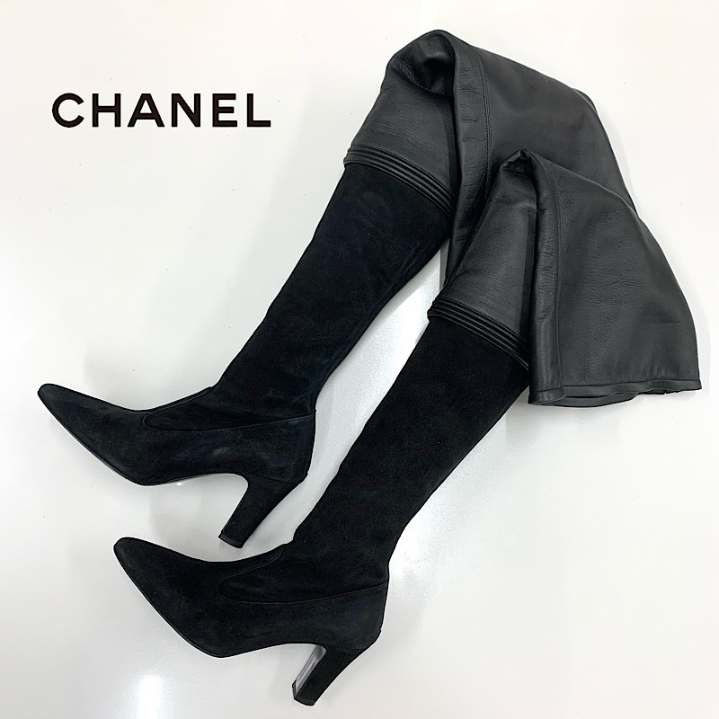 シャネル レザー スエード サイハイブーツ ブラック