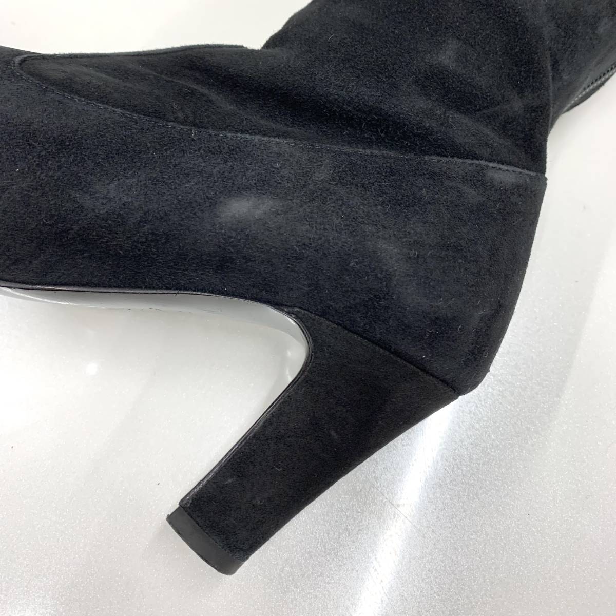 ヒールにやや擦れ、レザー部分の履きジワ、スエード部分に擦れ感が若干ありますが、目立つ程のダメージはありません。
