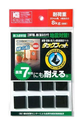 ・ TF-20K-2・耐震マット 震度7相当にも耐える 耐震ジェル タックフィット TF-20K-2 8枚入 角20mm 厚さ2mm 耐荷重8kg 花瓶、置物等の軽量物用 北川工業商品紹介 - より ●特長:耐震・防振・防ズレ超粘着固定マット ●注意:耐震用具取り付け前に家具類の取り付け場所が痛んでないか確認してください