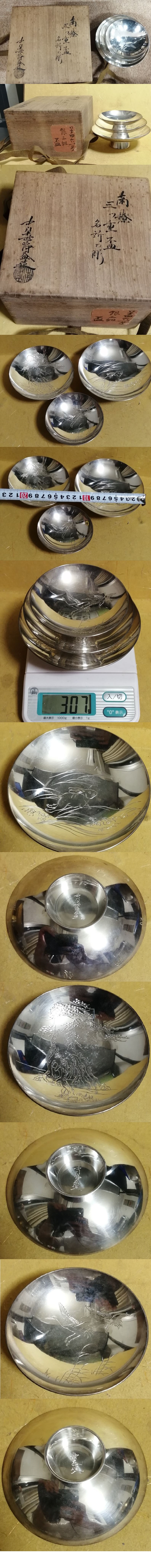 十世『中川浄益』作 兎彫 松彫 鶴彫 三客揃共箱 純銀 重307g 煎茶道具 本物保証 3客 共箱 茶道具 千家十職