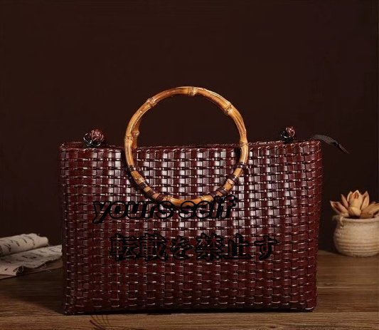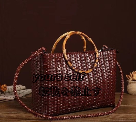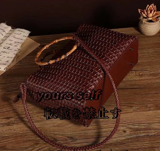 人気美品★ かごバック バスケット 籠バッグ 網代バッグ 天然素材 本革 牛革 トートバッグ 籠 バッグ ハンドメイド バンブーハンドル