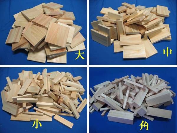 例=貯金箱:組み合わせ次第で色々。接着剤などで加工をすれば簡単。 コースター:角をサンドペーパーで取ればマイコースター。 入浴剤:お風呂に浮かべて森林浴、乳幼児のお風呂のおもちゃ。 積み木:天然材なのでなめても安心。 その他:色々な用途はアナタの工夫次第。 ●元々は工作材料なので表面はカンナ仕上げ(超仕上げ)、すべて無節なので綺麗(つるつる)。 ★色々な用途があると思いますので考えてください。 下記サイズの材料がランダムで入っています。 ◆長さ :約90mm~100mm ◆規格幅:40mm.45mm.60mm.70mmの4種類 ◆規格厚:9mm.12mmの2種類 ◆重量 :約1.5Kg(総重量) ◆国産ひのき ☆その他の材料 大、小、角も取り扱っていますので『出品者のオークション』を見てください。 | ||||
