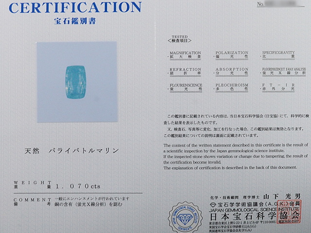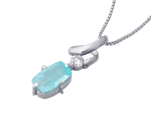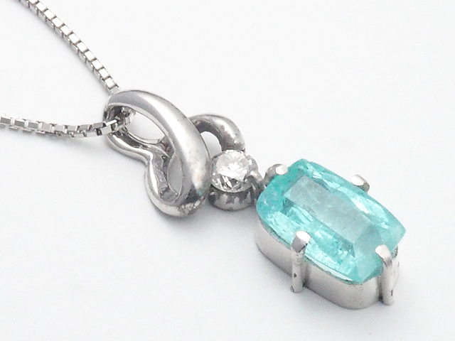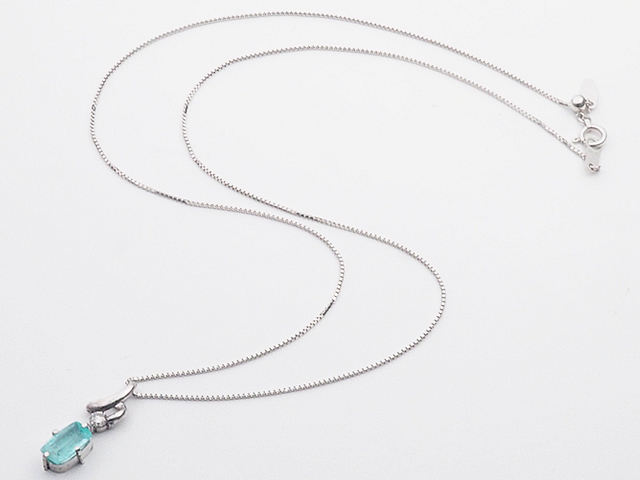 詳細:ノーブランド パライバトルマリン/1.070ct ダイヤ/0.10ct K18WG ホワイトゴールド ネックレス 鑑別書付き 仕上済