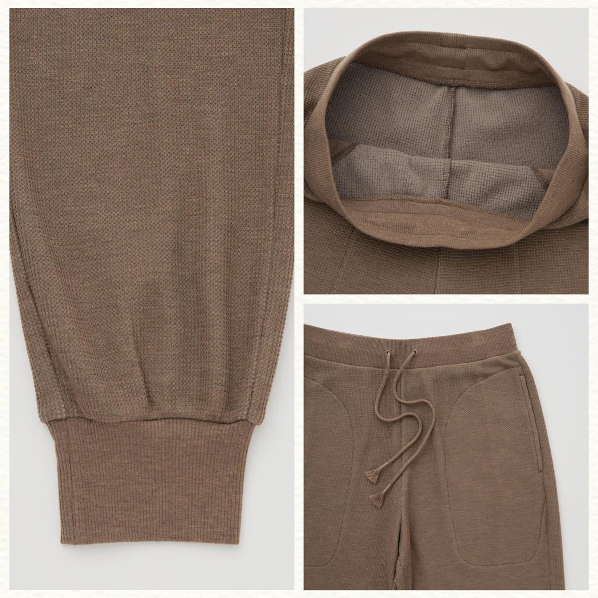 - 凹凸感があって暖かくやわらかな、裏面起毛のワッフル編み。