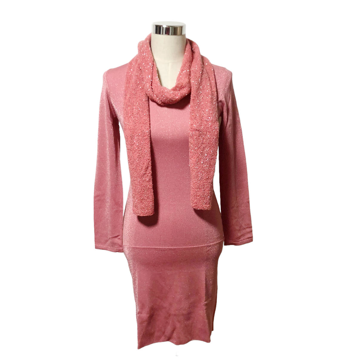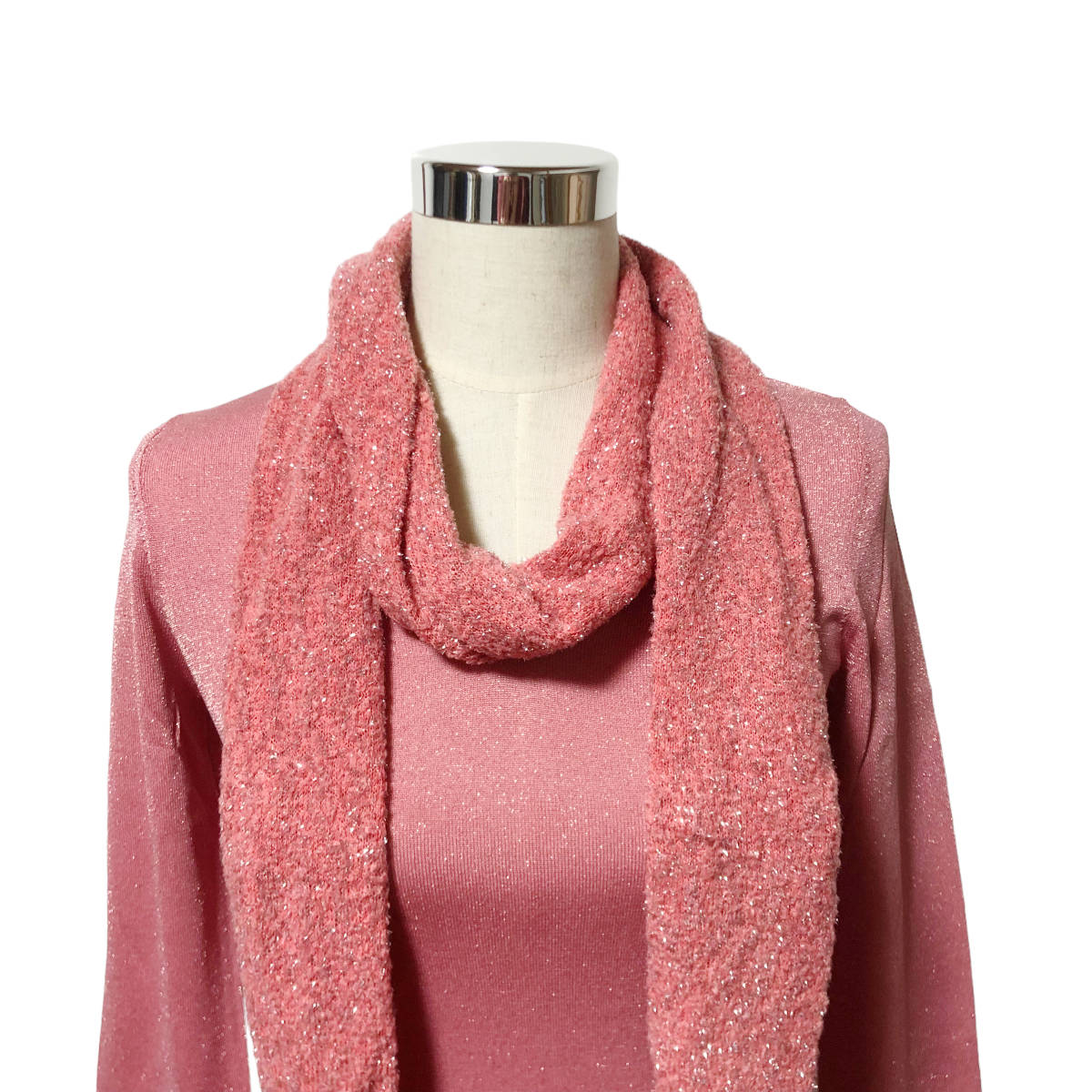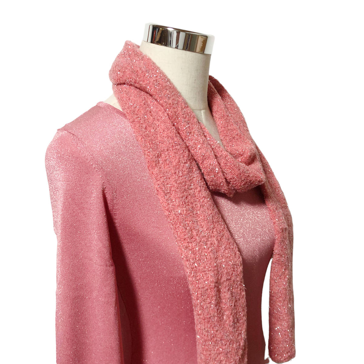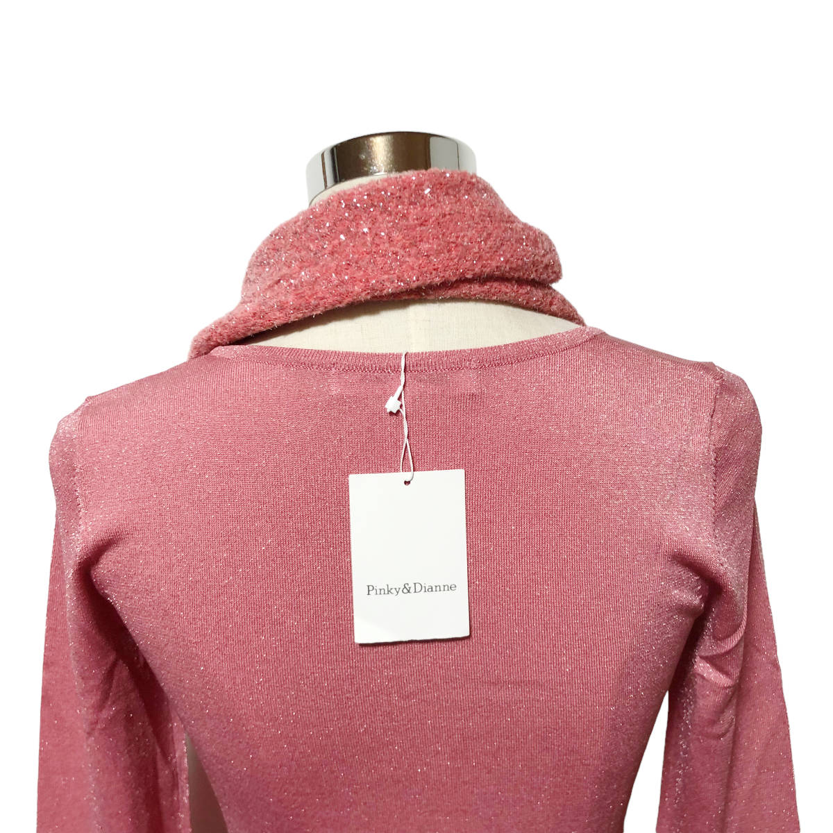 Pinky&Dianne ピンキー&ダイアン ニットワンピース マフラー付き ラメ 長袖 38 ピンク レディース A27