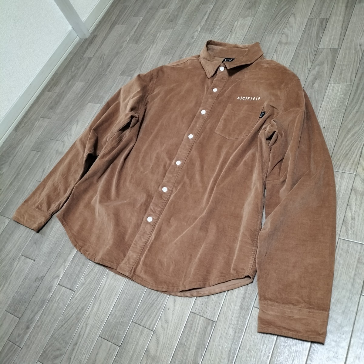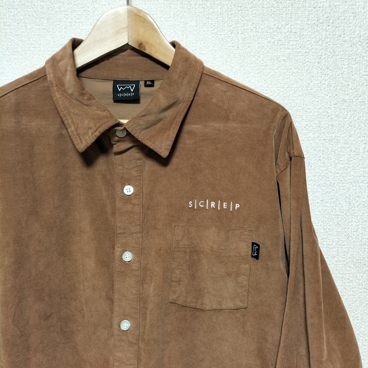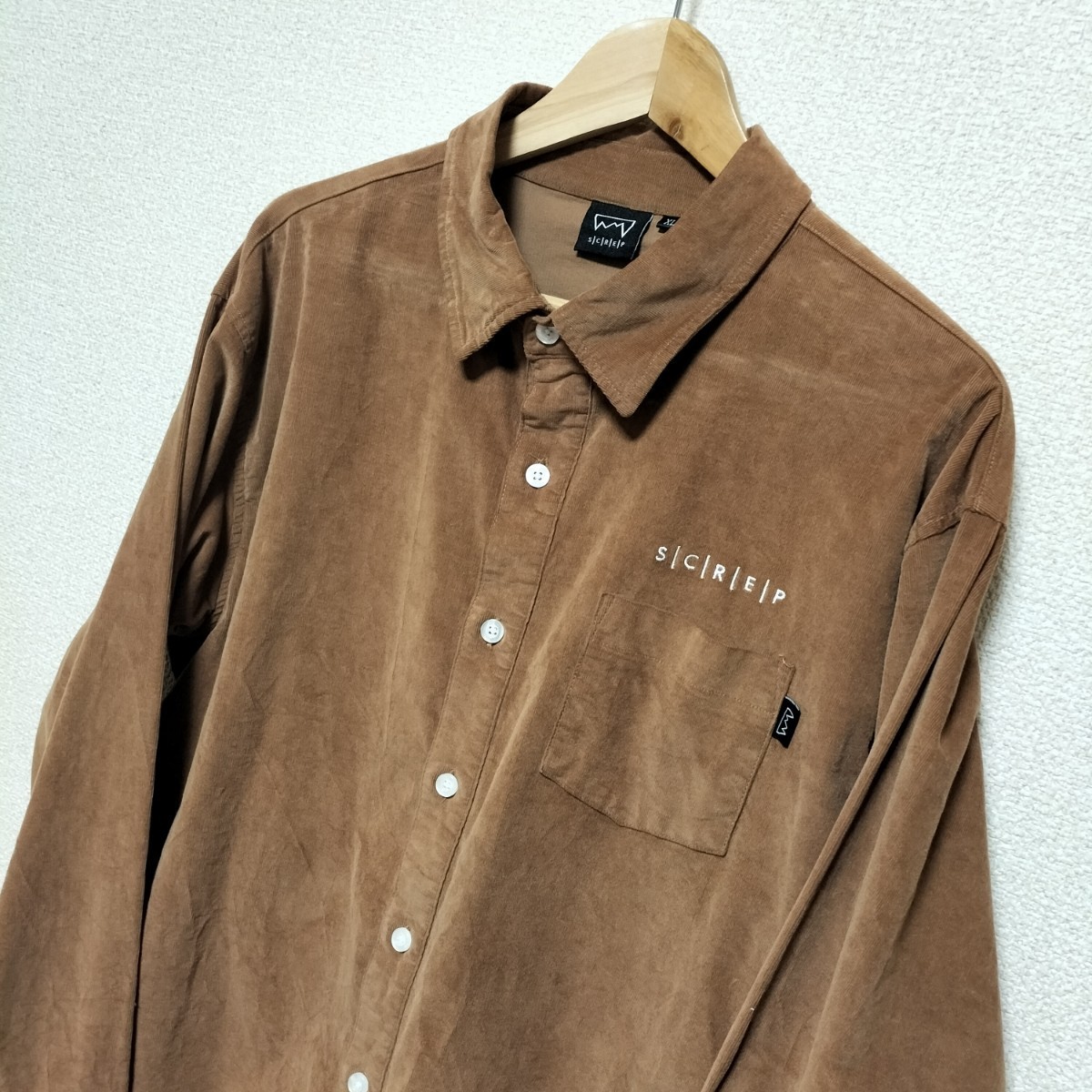 美品★SCREP コーデュロイ シャツ ストレッチ素材混 トップス メンズ サイズXL 長袖 茶系 ブラウン スクレップ ブランド古着 USED