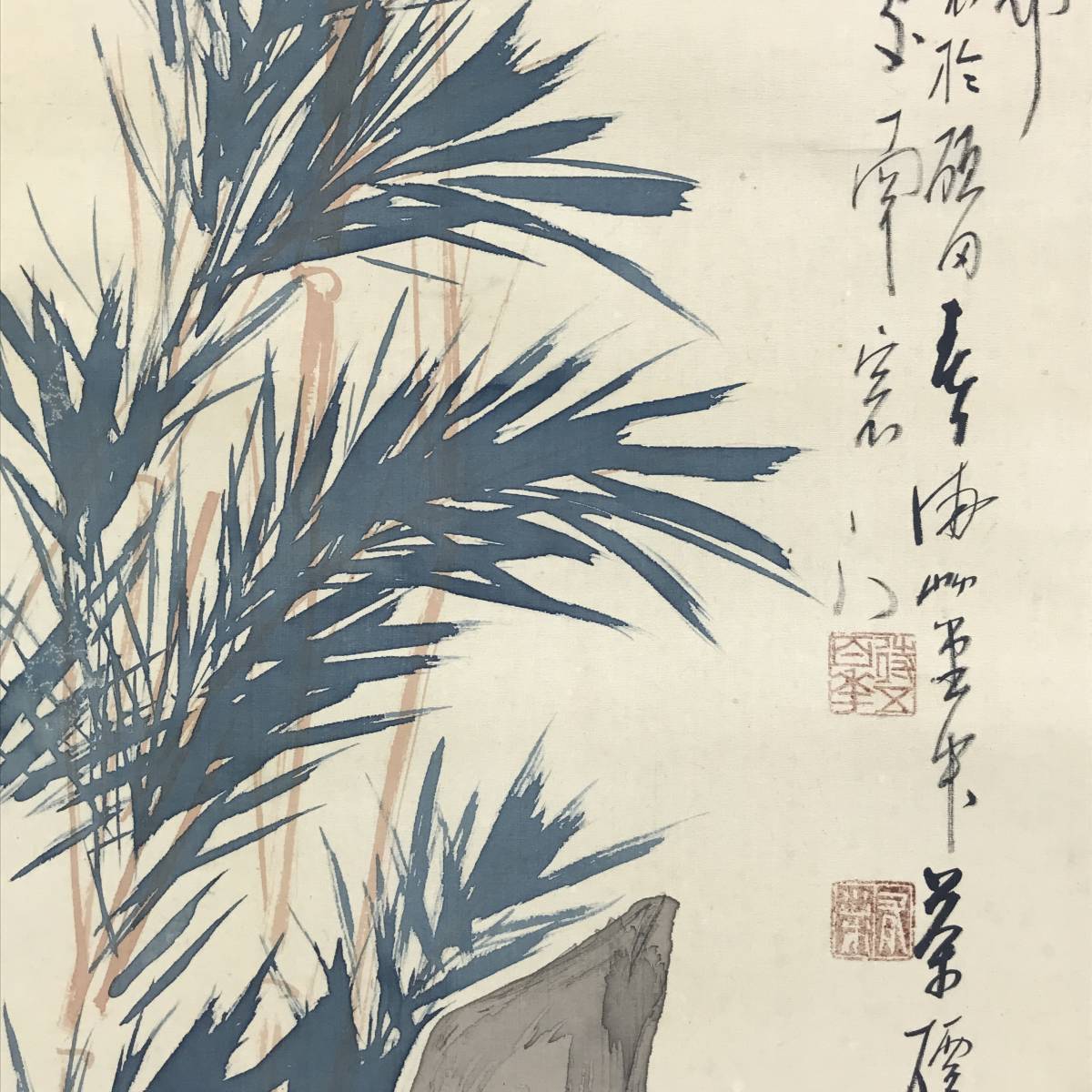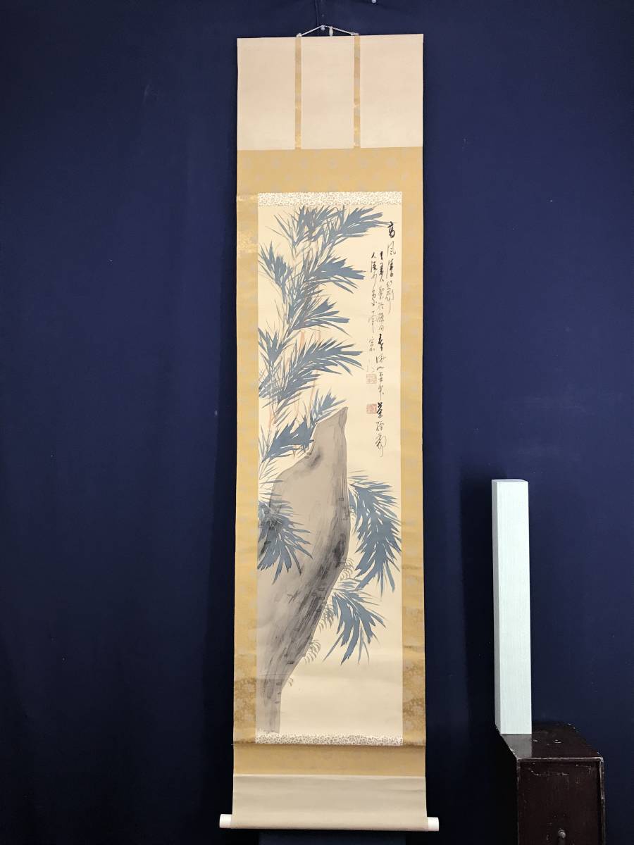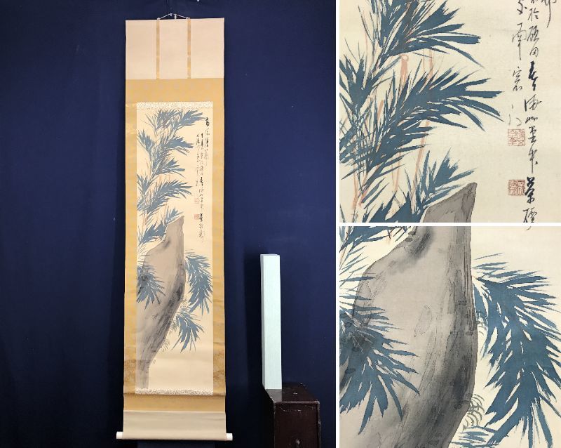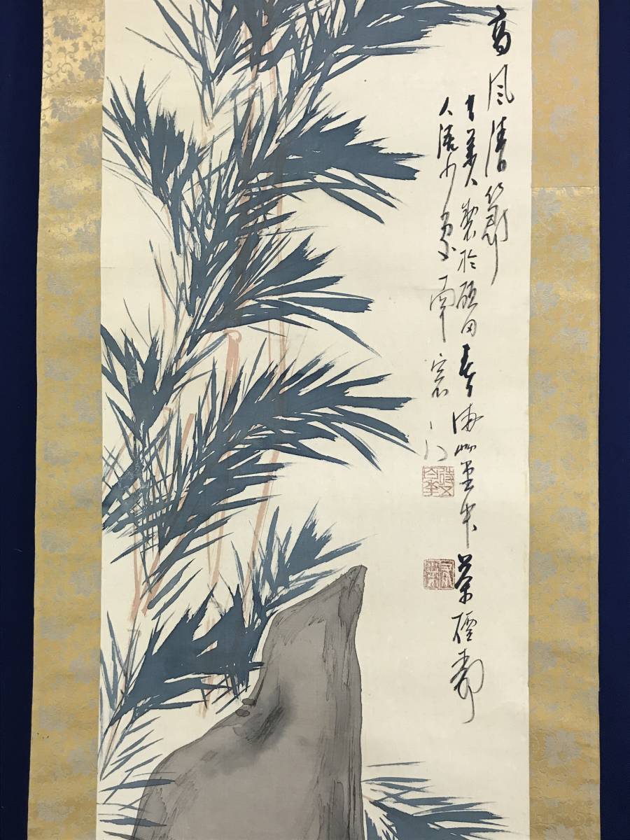 作者不詳/高風清節/竹石画賛/竹図/掛軸☆宝船☆AE-79