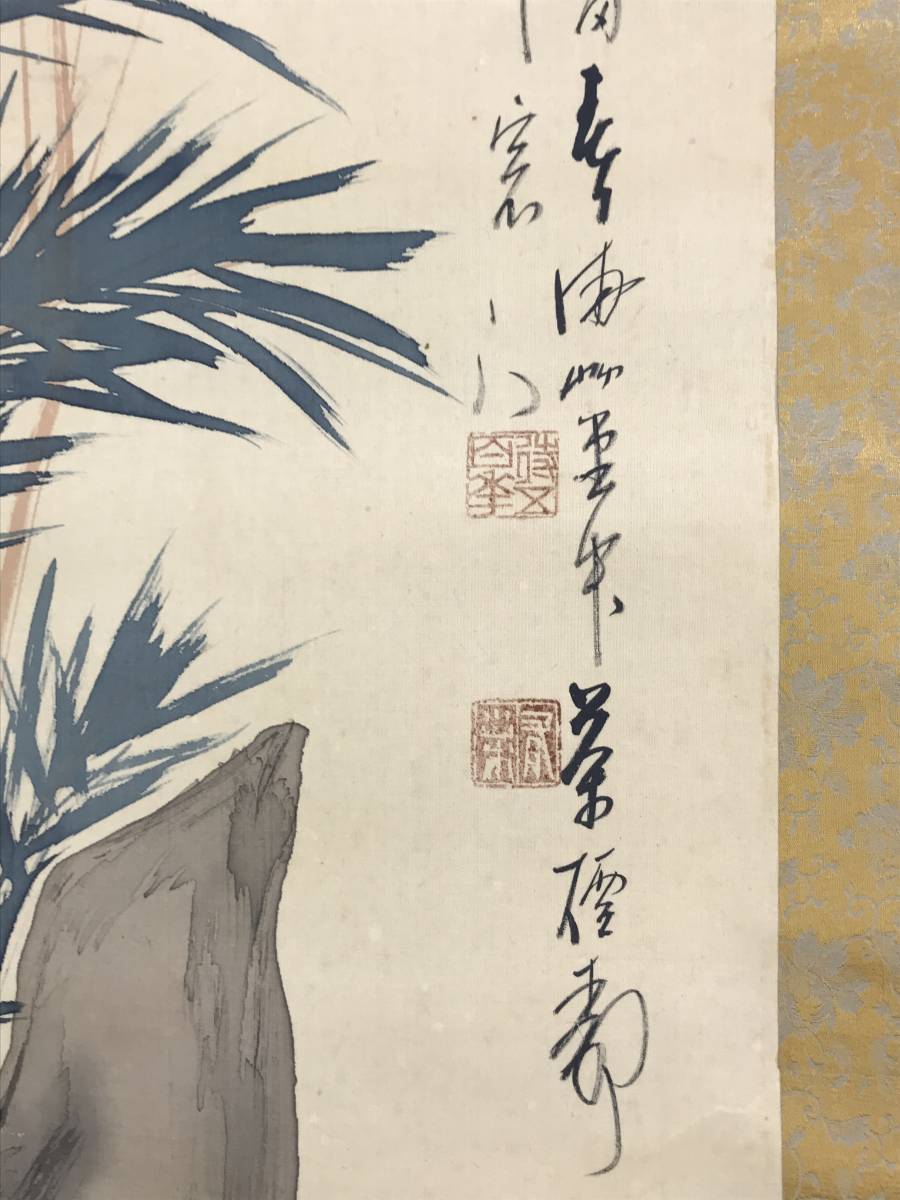【作品状態】 本紙は絹本肉筆です。本紙は薄汚れ、小シワあります。表装は天地に薄汚れ、多少の巻シワあります。