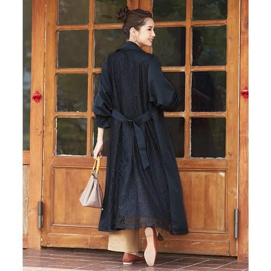 素材違いの切り替えがおしゃれなバックデザイントレンチコート。
