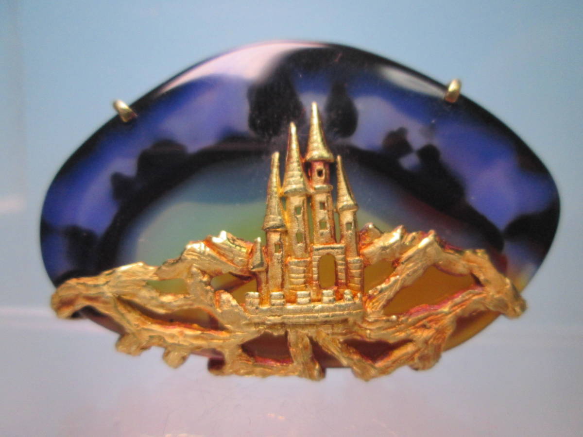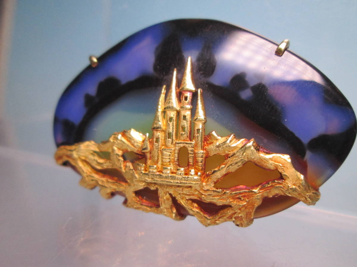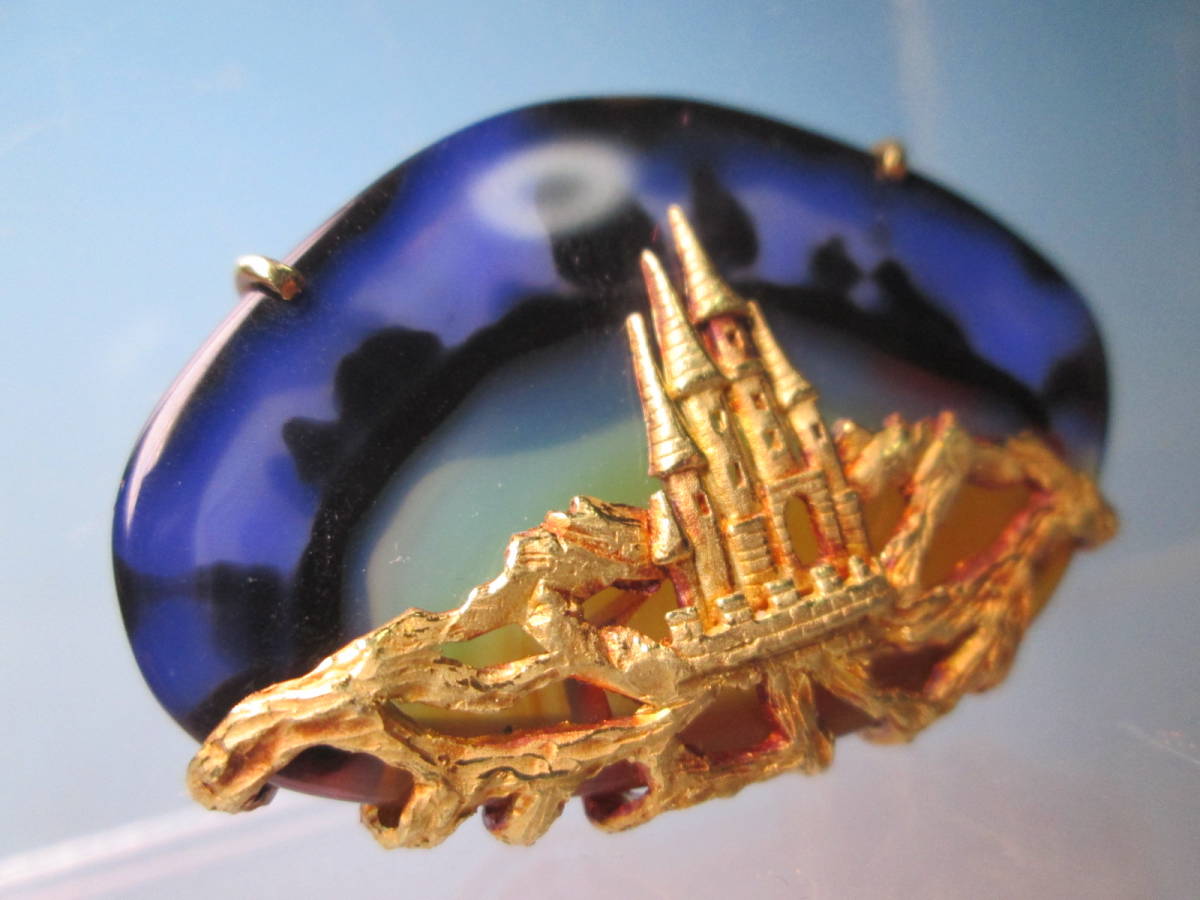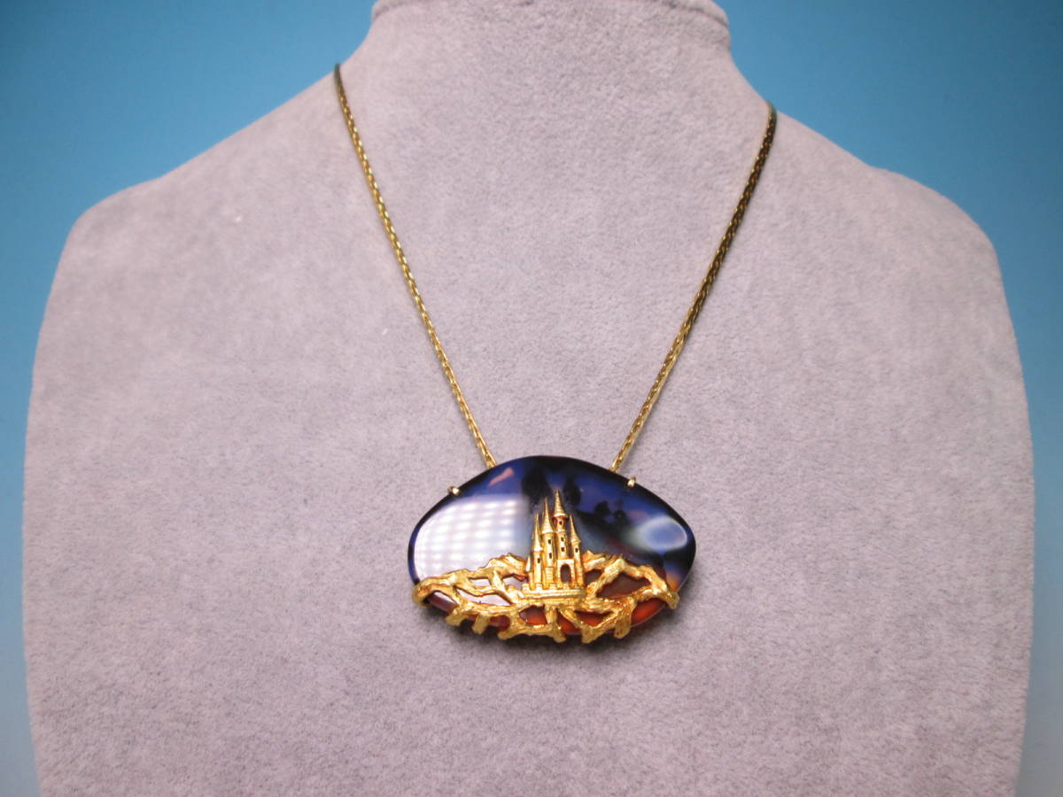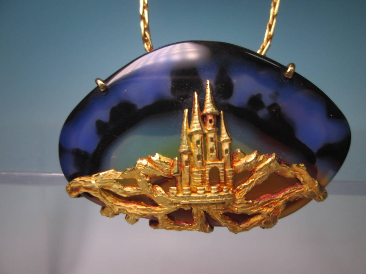 【江月】K18 幽玄の世界 美しい夜空にお城のデザインブローチ兼ペンダント 17,3g