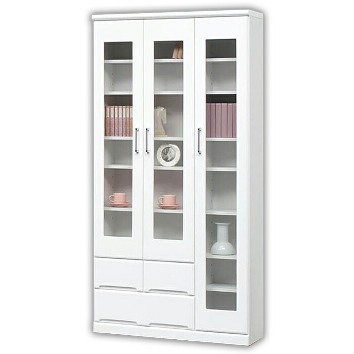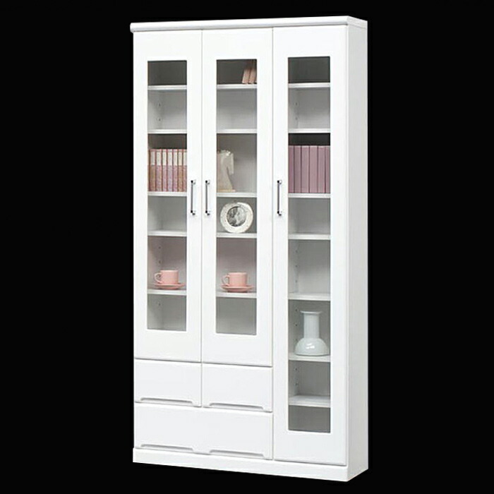 本棚 完成品 扉 幅90cm 書棚 鏡面 リビング収納 国産 ●ホワイト