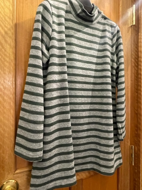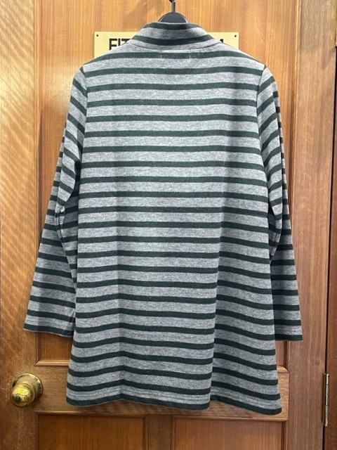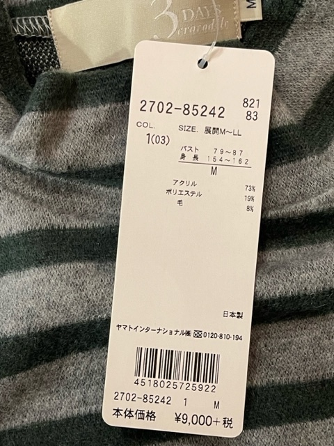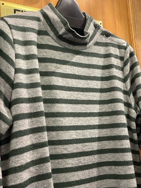 M 日本製 老舗ブランド Aライン 緑×グレー ボーダー チュニック レディース 定番アイテム 新品未使用品 送料無料 婦人 毛混 ハイネック