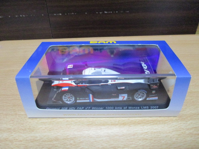 スパーク  1/43  「 プジョー 908 HDi FAP 」 #7   モンツァLMS 1000km 優勝車 2007y ・送料 500円(レターパック発送) BAM特注
