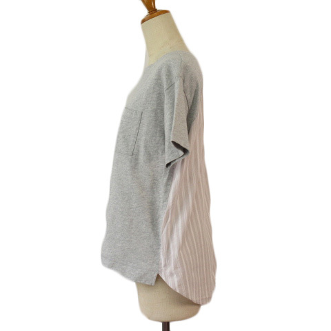 コムサイズム COMME CA ISM ONIGIRI おにぎり ストライプ 切り替え カットソー 9 グレー レディース