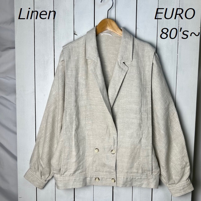 EURO古着 80s~90s ゆったり大きめ ドルマンスリーブ リネンダブルジャケット42 生成り XL~ オールド ヴィンテージ ヨーロッパ 麻●106